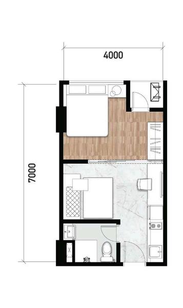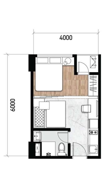 1 Kamar Tidur (1BR) Dengan luas sekitar 31-34 M², tipe ini menawarkan ruang lebih bagi penghuni yang membutuhkan privasi tambahan atau ruang kerja. 2.