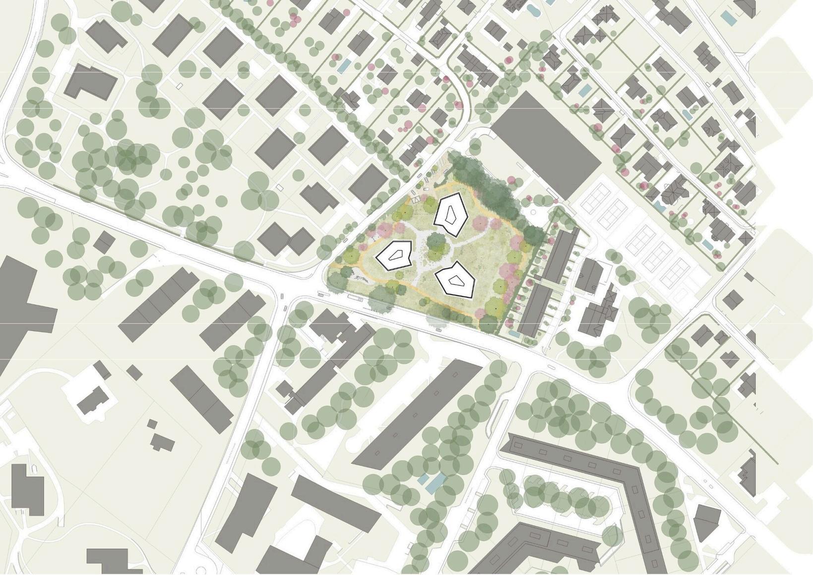 Proyek ini menawarkan interpretasi kontemporer dari konsep kota taman menggabungkan skala manusia yang berorientasi pada lanskap dengan kepadatan dan rasionalitas.