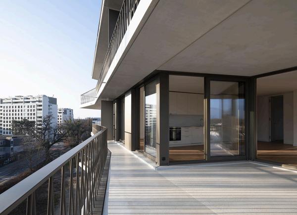 Penataan ruang dalam apartemen memungkinkan penghuni menikmati lanskap tanpa kehilangan privasi.