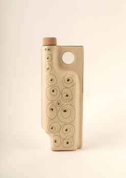 Nasce dall’incontro tra funzionalità e memoria naturale. La forma, essenziale e organica, richiama un frammento di ramo: un segno che diventa contenitore e scultura insieme. La ceramica, con la sua superficie materica e protettiva, custodisce l’olio difendendolo dalla luce e preservandone le qualità. Il volume, scolpito da linee concentriche, restituisce una tattilità intensa e una percezione visiva dinamica. Non è soltanto una bottiglia, ma un gesto simbolico: un legame diretto tra terra, albero e frutto, che dal paesaggio mediterraneo arriva fino alla tavola.