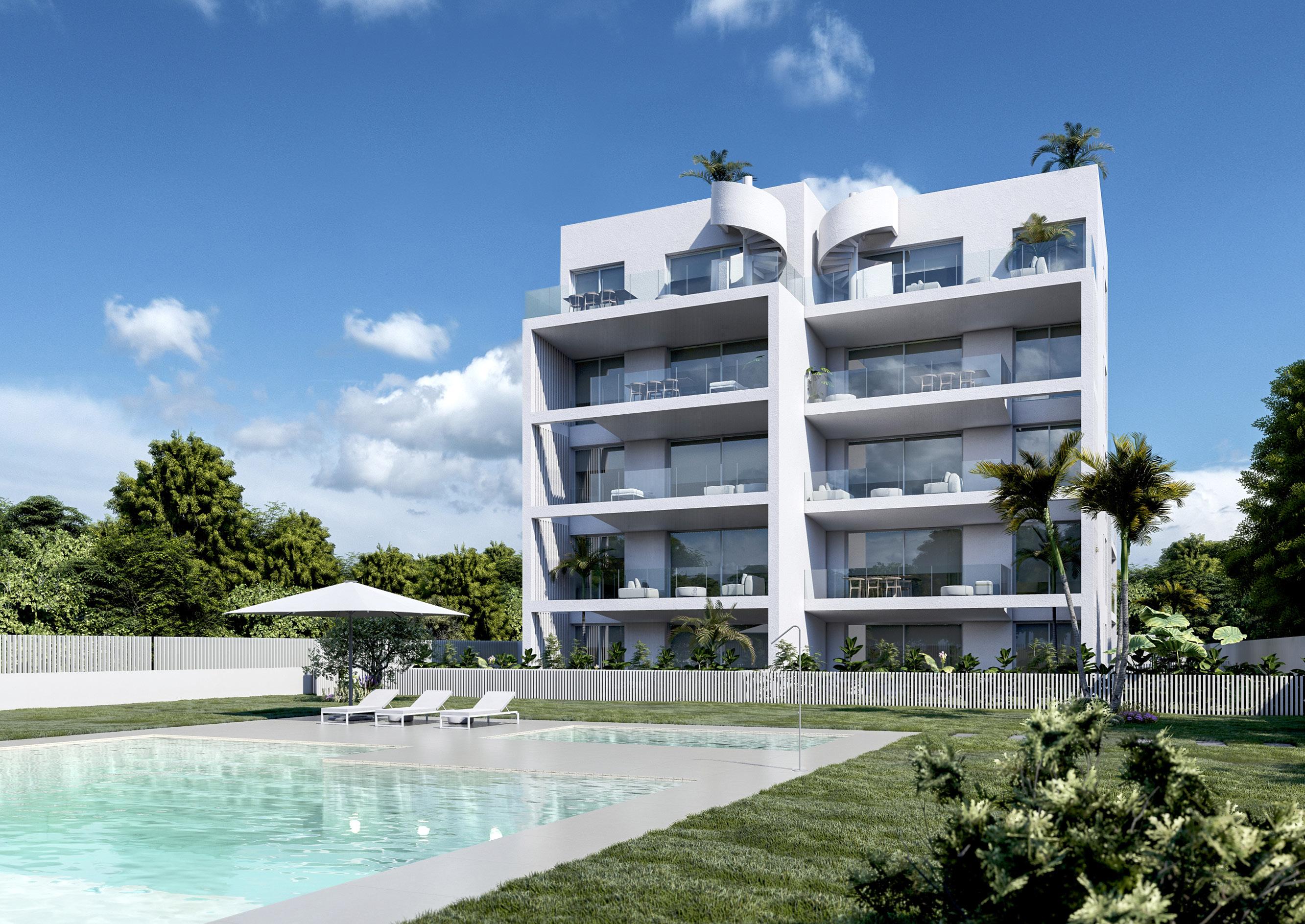 Additionally, the residential complex features spacious gardens that will allow you to enjoy the Mediterranean climate and cool off in the pools. Each apartment comes with its own storage room where you can keep your belongings and a private parking space under a pergola to protect your car.