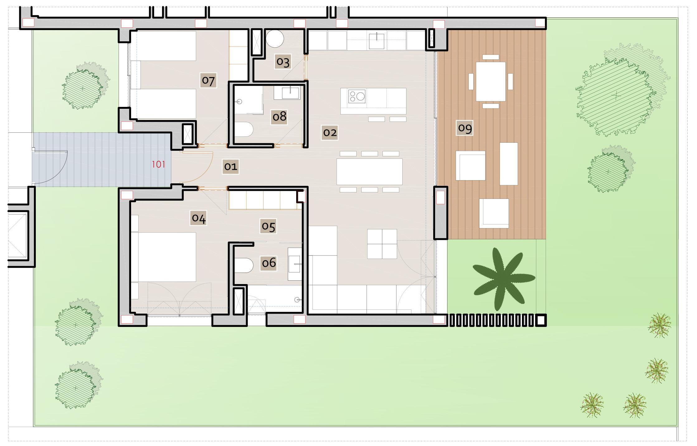 APARTAMENTO DE 1ª, 2ª Y 3ª PLANTA - 2 DORMITORIOS | Unidades 201 - 301 - 401