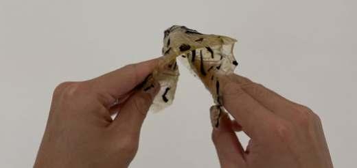 The material that has CMC powder involved will be shown has transparent, and it tends to be more flexible and elastic, the ones that has the ingredient of chitin powder involved will be shown as in yellow. It tends to be less elastic but stiffer and more brittle.