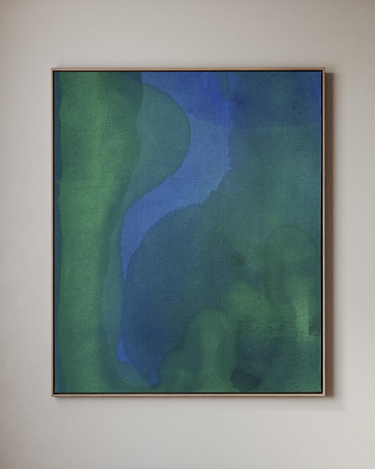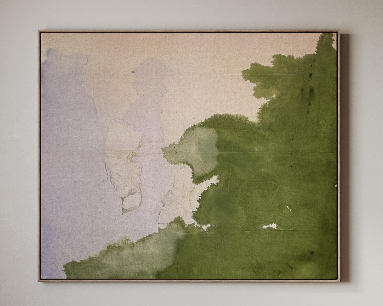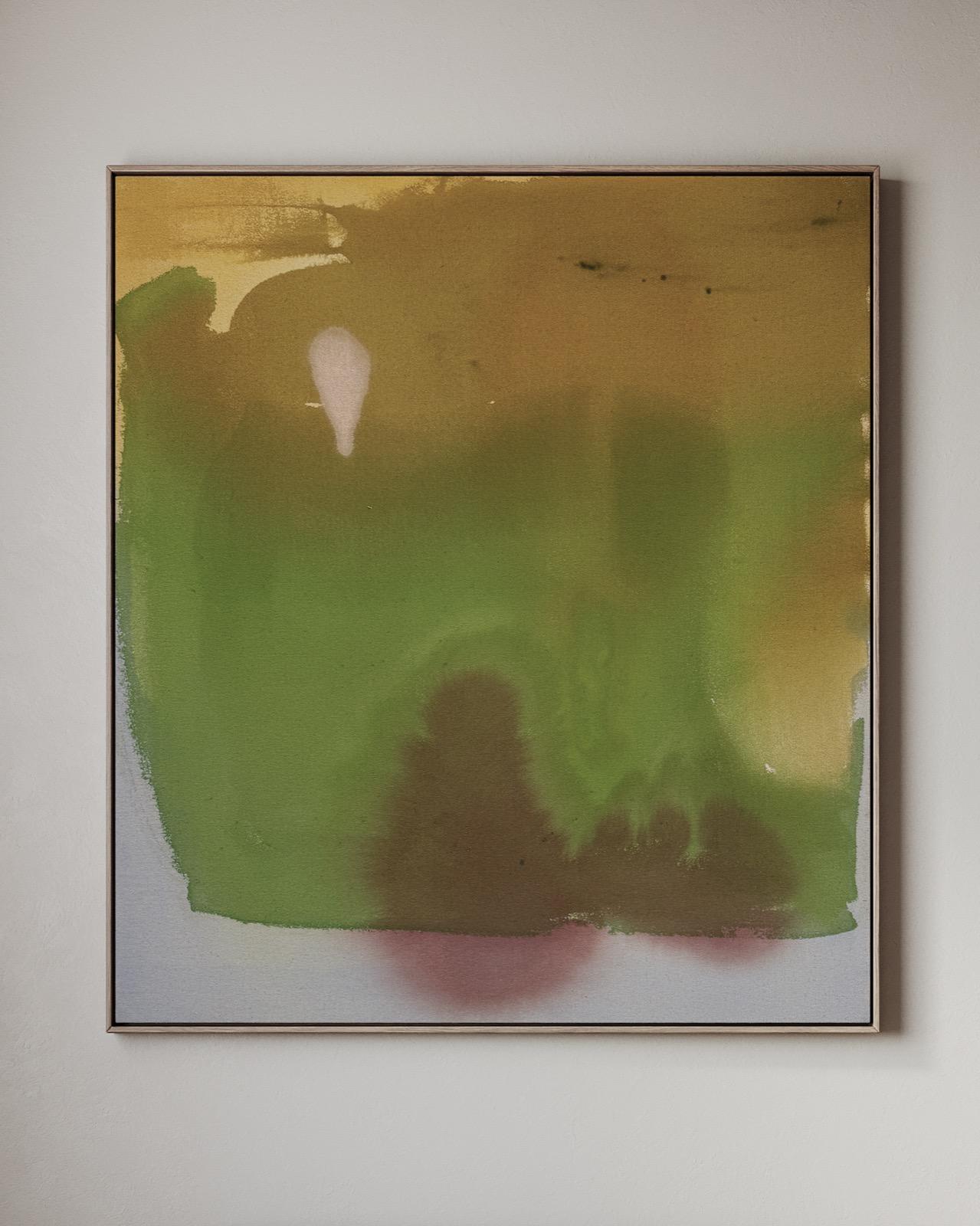 Working intuitively through poured colour and layered stains, I allow sensation rather than narrative to guide each painting. These works are not descriptions of place, but internal landscapes, moments of arrival, pause, and quiet recognition. I’m interested in how feelings can carry weight yet remain transient: how we soften, withhold, or release them as a form of self-protection, and how our emotional positions, like colour, remain changeable rather than fixed.