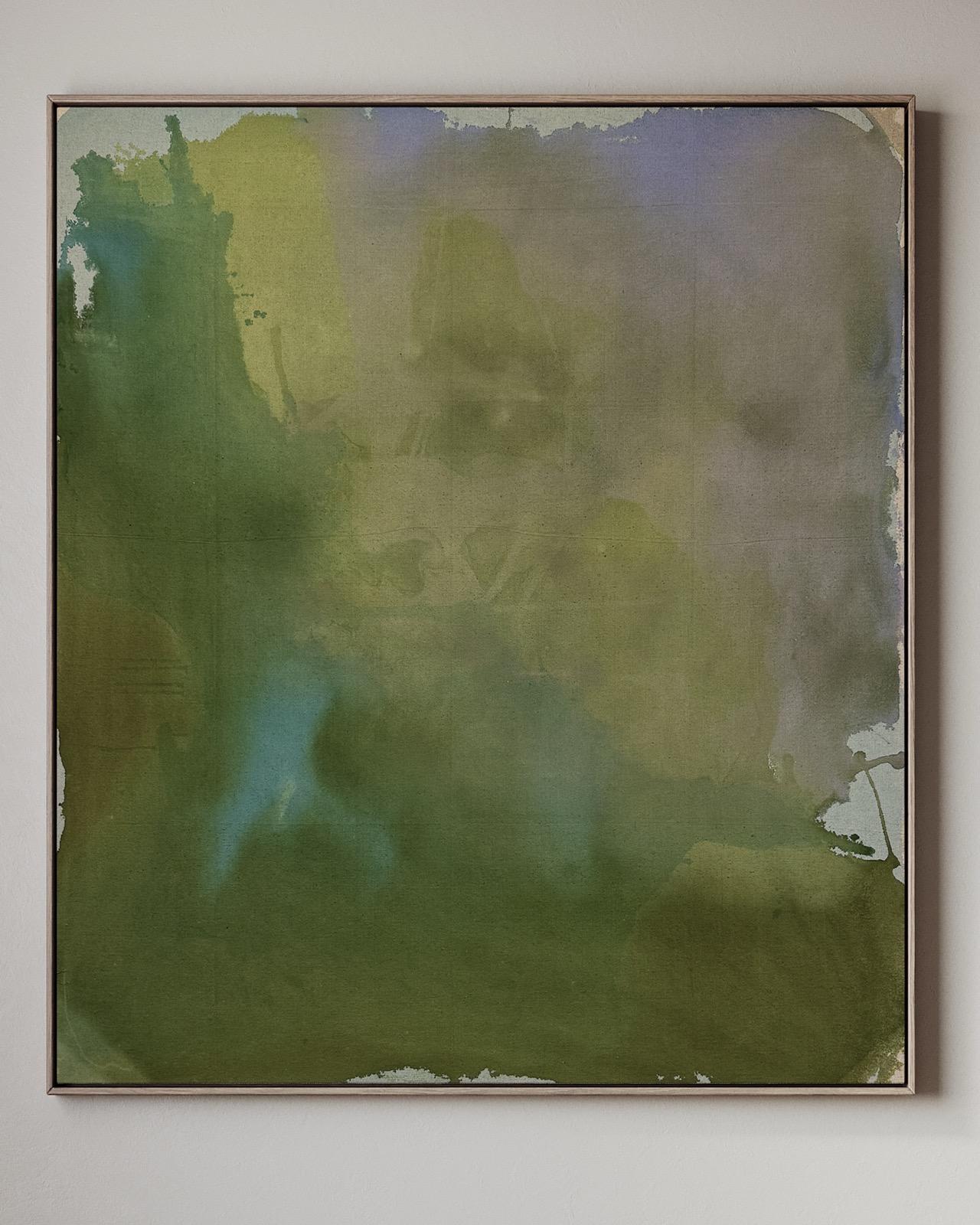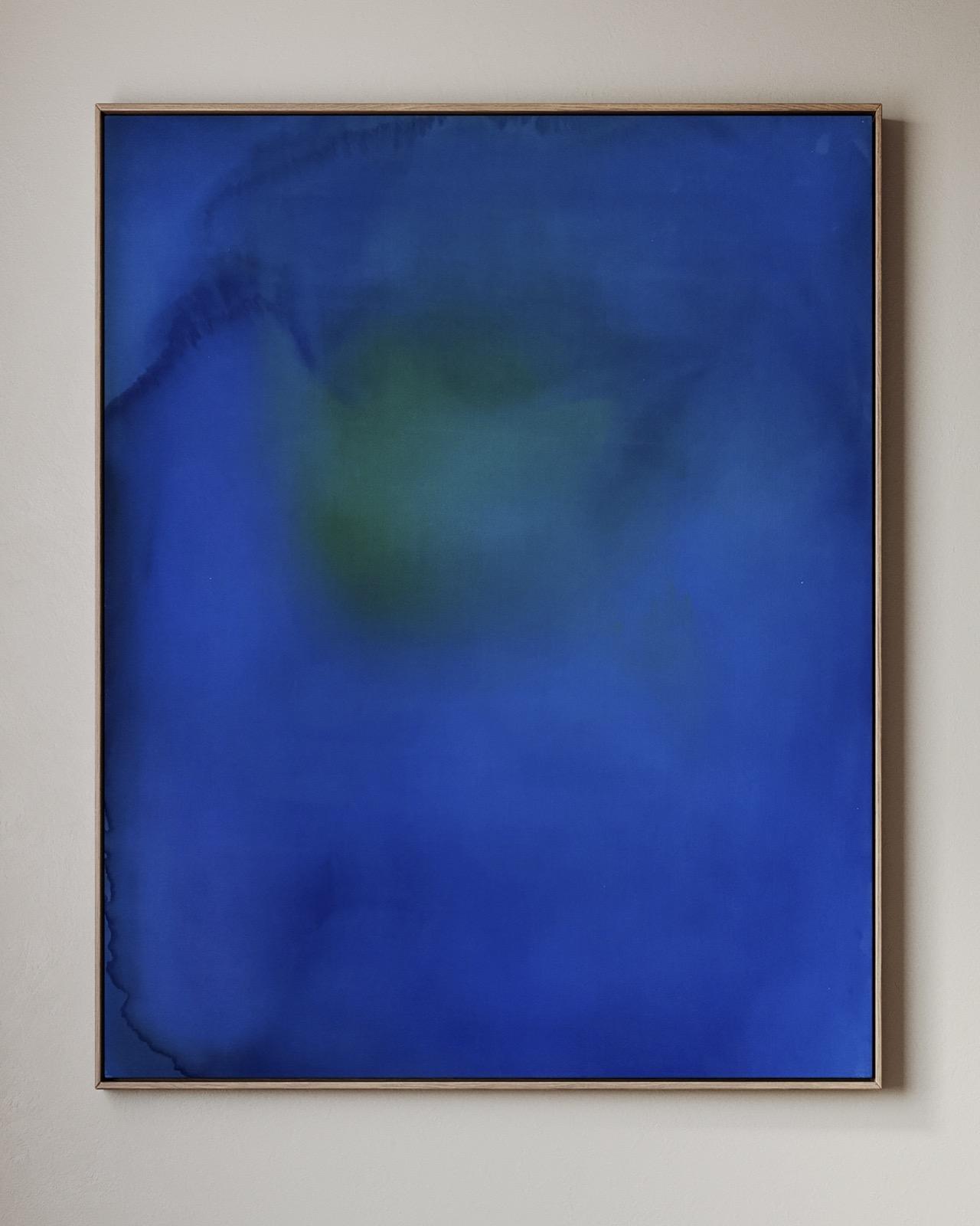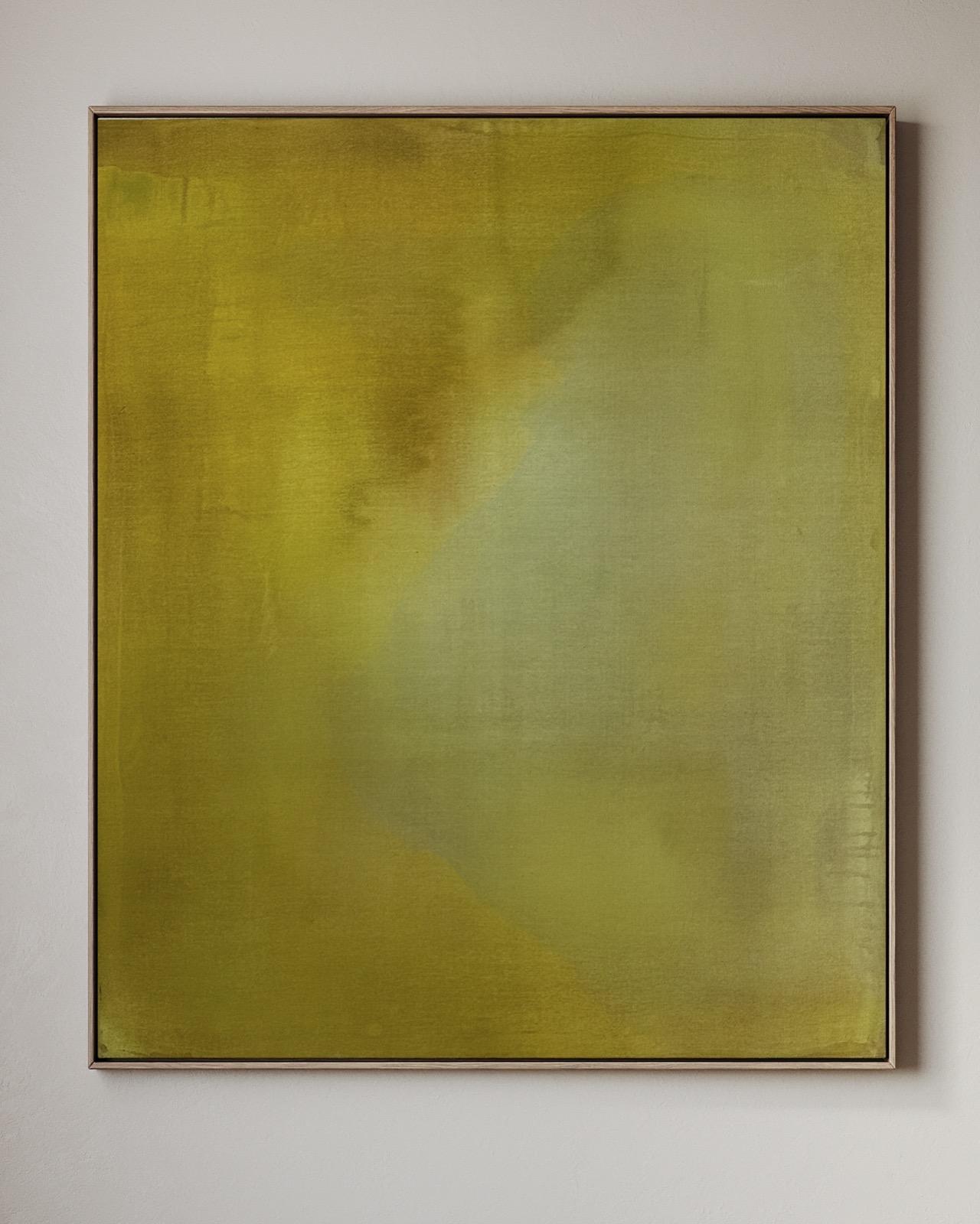 Working intuitively through poured colour and layered stains, I allow sensation rather than narrative to guide each painting. These works are not descriptions of place, but internal landscapes, moments of arrival, pause, and quiet recognition. I’m interested in how feelings can carry weight yet remain transient: how we soften, withhold, or release them as a form of self-protection, and how our emotional positions, like colour, remain changeable rather than fixed.