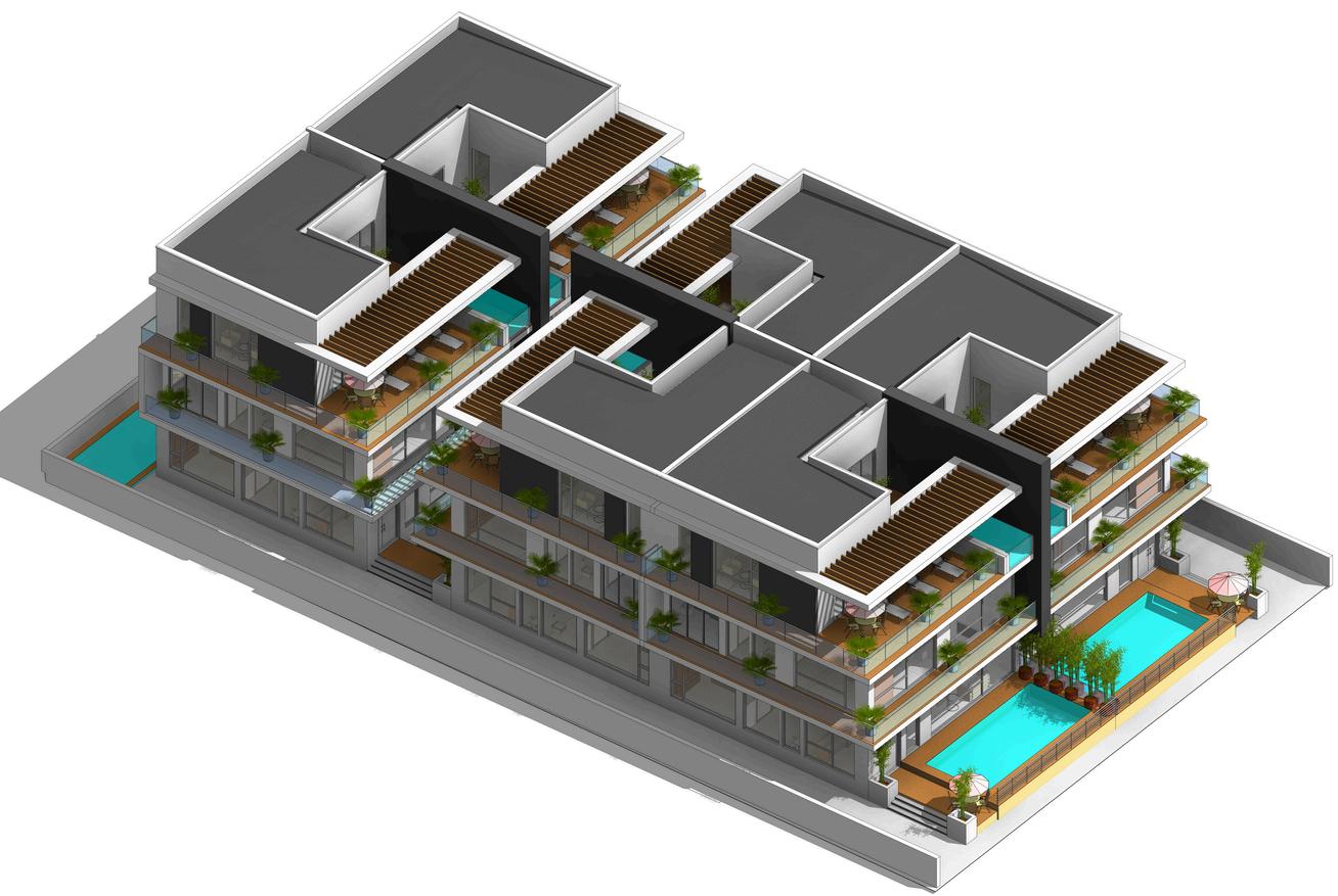Apartment building. A 66- unit residential project consisting of 16 twobedroom and 50 one-bedroom units.