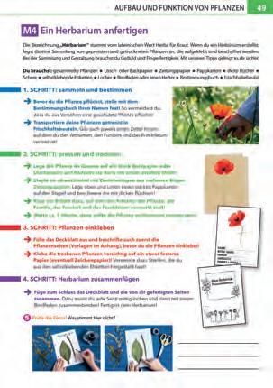 7. METHODENSEITEN: Sie zeigen dir Schritt für Schritt, wie du arbeiten sollst! Suche die Methodenseite „Herbarium – sammeln und bestimmen“ und schreibe auf, was du in Schritt 2 tun sollst!