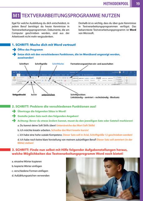 Kurze prägnante Anleitungen in orange leiten die Schülerinnen und Schüler an.