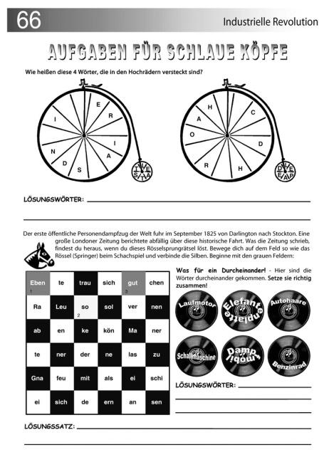 F 1/2 der Seiten als farbige Arbeitsseiten – „Aufgaben für schlaue Köpfe“