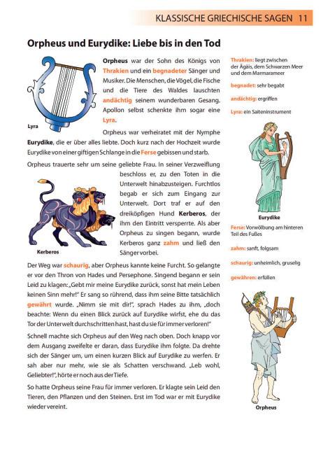 Die im Text orange markierten Wörter werden in der Seitenspalte erklärt. Das führt zu einer gezielten Wortschatzerweiterung.