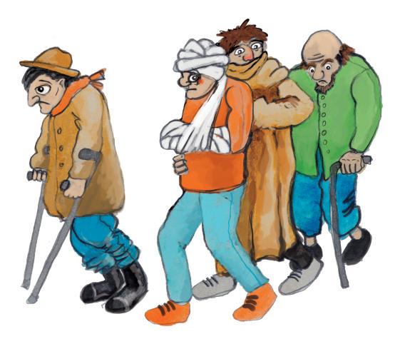 C. Augengymnastik: Schaue dir die acht ineinander verknäulten Springseile genau an! Entwirre die Seile und notiere jeweils, welche Enden zusammengehören!