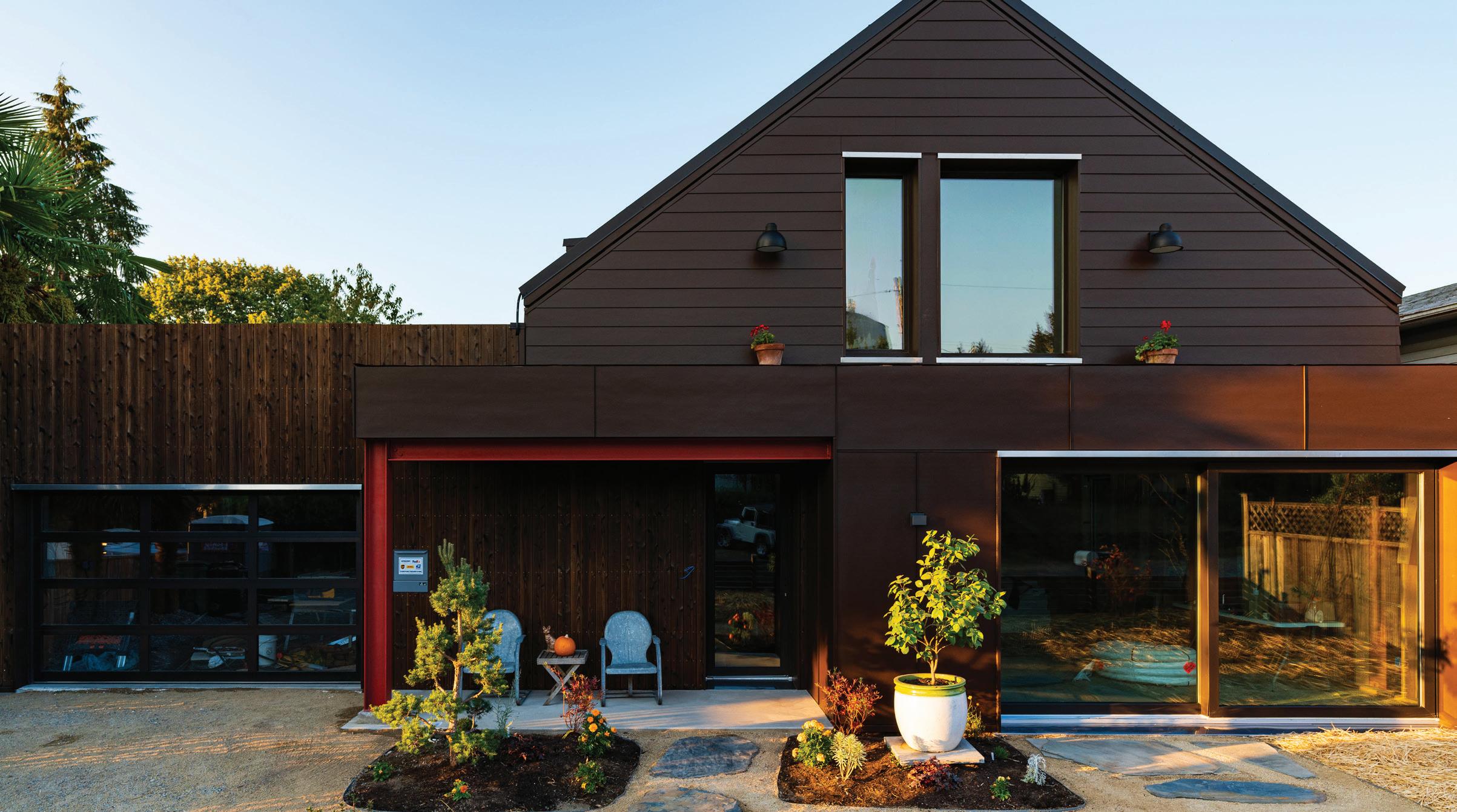 The Dogwood house is an elegant yet modest project located in an urban area. Though this prefabricated, 1800 sq ft Net Zero Passive House is an excellent example of smart building technology, it was designed to be in scale with the existing neighborhood, engaging the street with a front porch and large south facing windows.