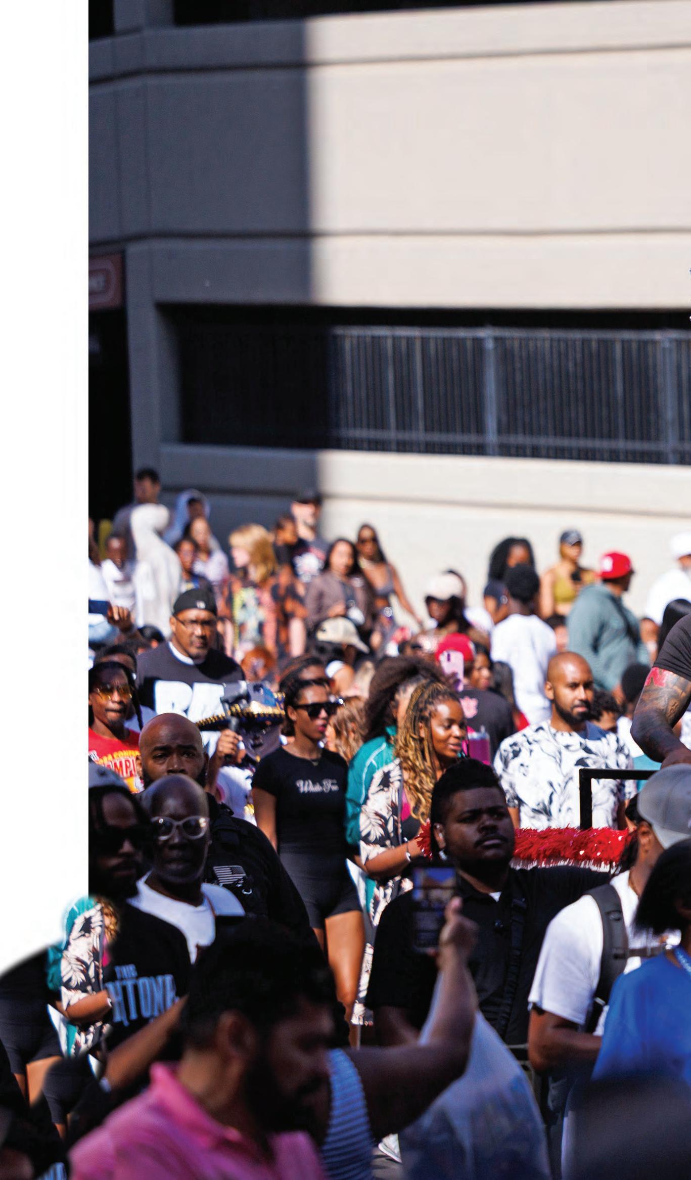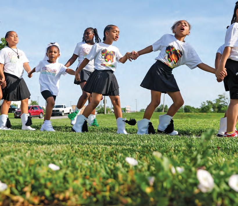 Members of the New Wave Drill Team are getting in line, setting the stage for a vibrant start of the Juneteenth parade.