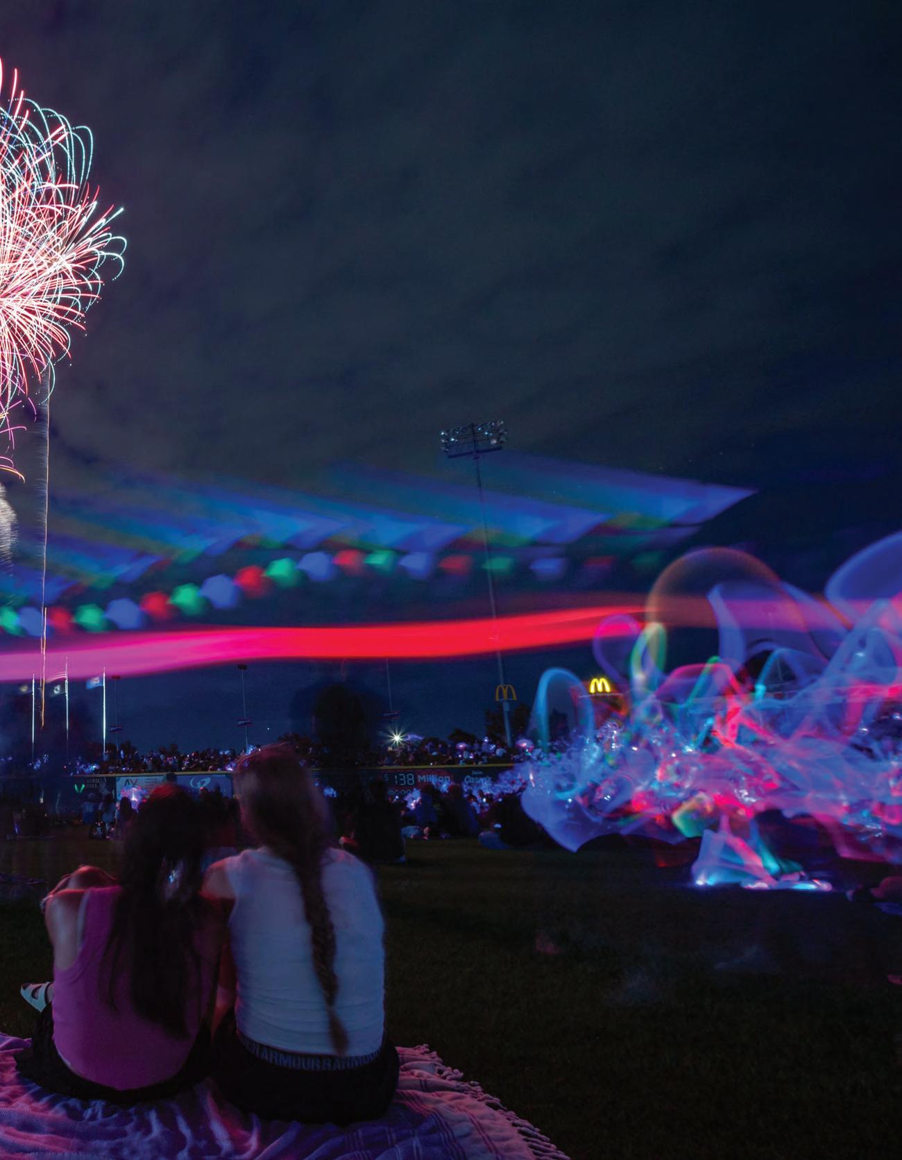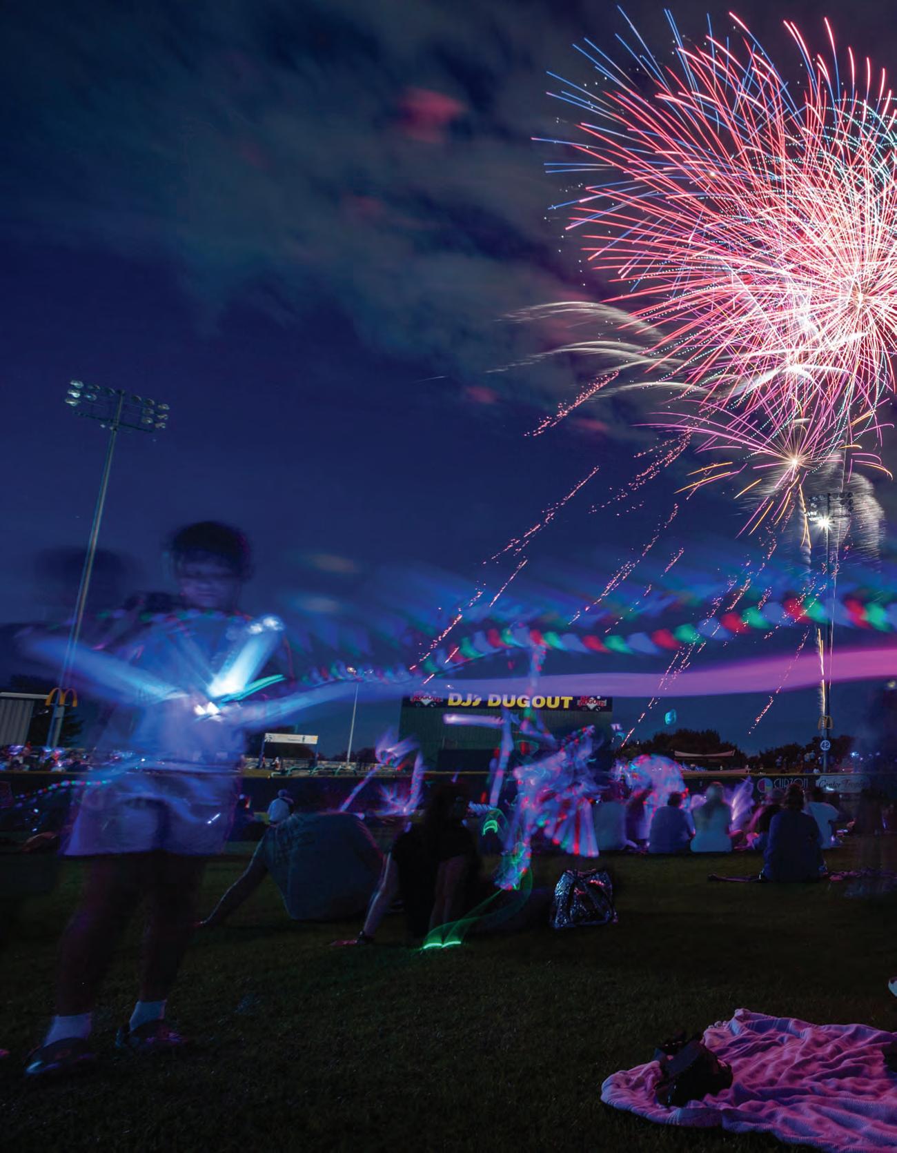 Spectators wave glowsticks and watch fireworks following the Omaha Storm Chasers game at Werner Park in Papillion. CHRIS MACHIAN