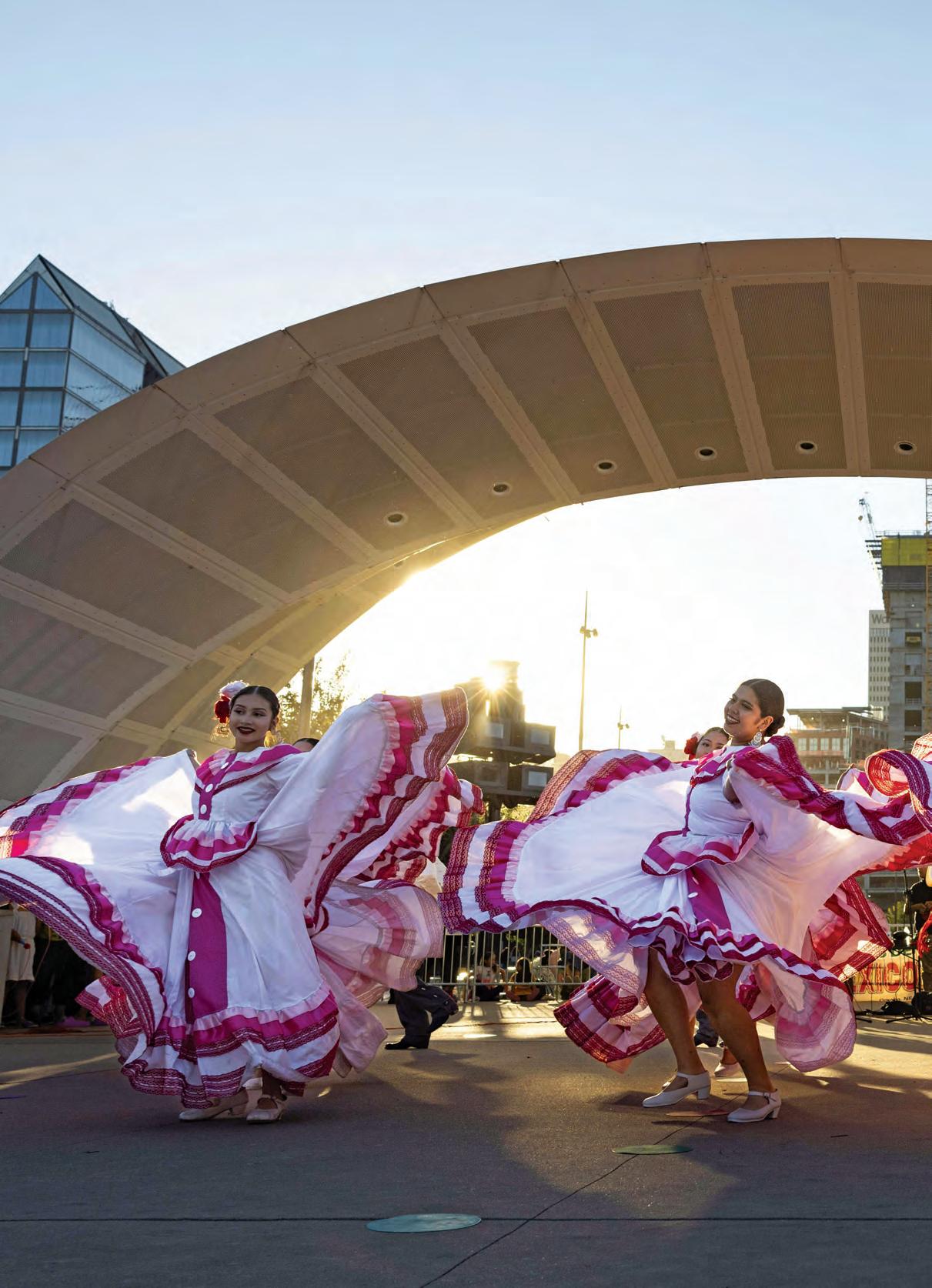 Dancers perform a folkloric dance at a cultural dance event hosted by Raíces de México at Gene Leahy Mall. MEGAN NIELSEN