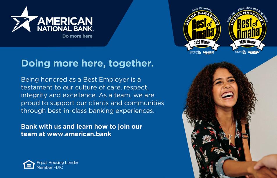 On behalf of the Greater Omaha Chamber, congratulations to the 202 6 recipients of Best of Omaha. This recognition is more than an award—it is a reflection of the incredible energy, creativity, and resilience that make our community thrive.