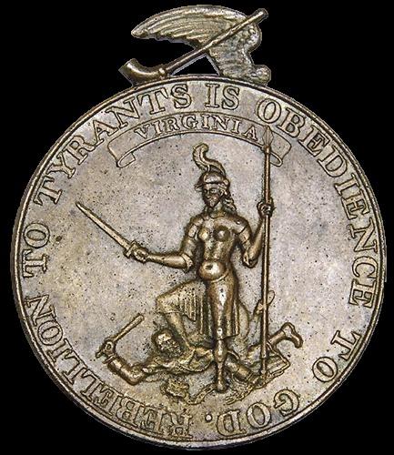 The Virginia state seal was created in 1776. The motto on the obverse reads: Sic sempertyrannis , (Thus,alwaystotyrants) - Which was a clear reference to the declaration of independence from Great Britain.