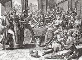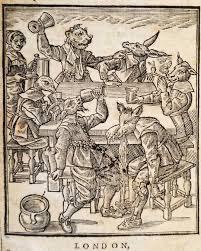A 1635 AD, woodcut depiction from London, depicting merry debauchery and carousing.