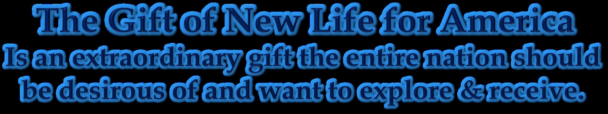 If in your thoughts to the list of questions just asked and pondered, you and U.S. all, thought any of the same thoughts as our nation’s forefathers and mothers (our ancestors), then just maybe, you can see how the Gift of New Life might be great for ourselves and ... ”ALL AMERICAS.”