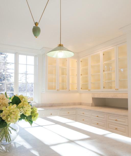 Upon entering the foyer, there are two powder baths on either side. Down a hallway from the mudroom entrance is a parlor-like billiard room enclosed with floor-to-ceiling mahogany wall panels. Adjacent to the billiard room is a chef’s kitchen, which opens into a large butler’s pantry and several other spacious walkin pantries.
