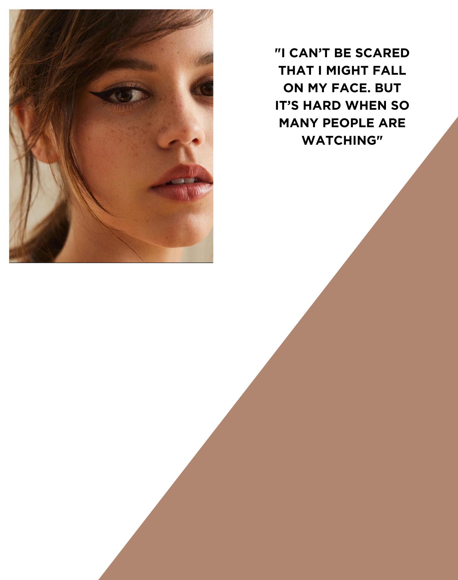 In front of the camera, Ortega is mesmerising to watch and naturally photogenic. Between takes, she is quiet and contemplative (by her own admission, she’s a "massive introvert") and, when asked if she wants to see a preview of the shoot on the monitor, she politely declines. Similarly, she can’t look at herself acting on screen because, she says, she’s her own worst critic and tends to fixate on what she could have done better.