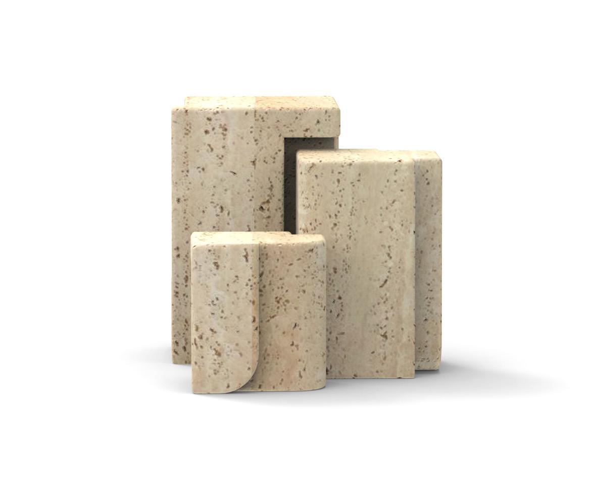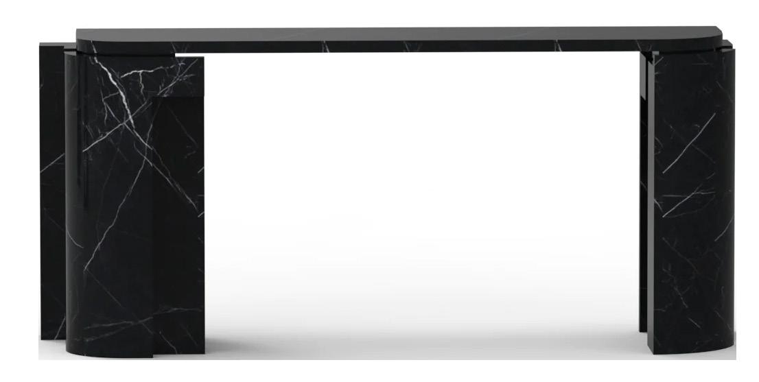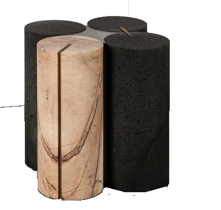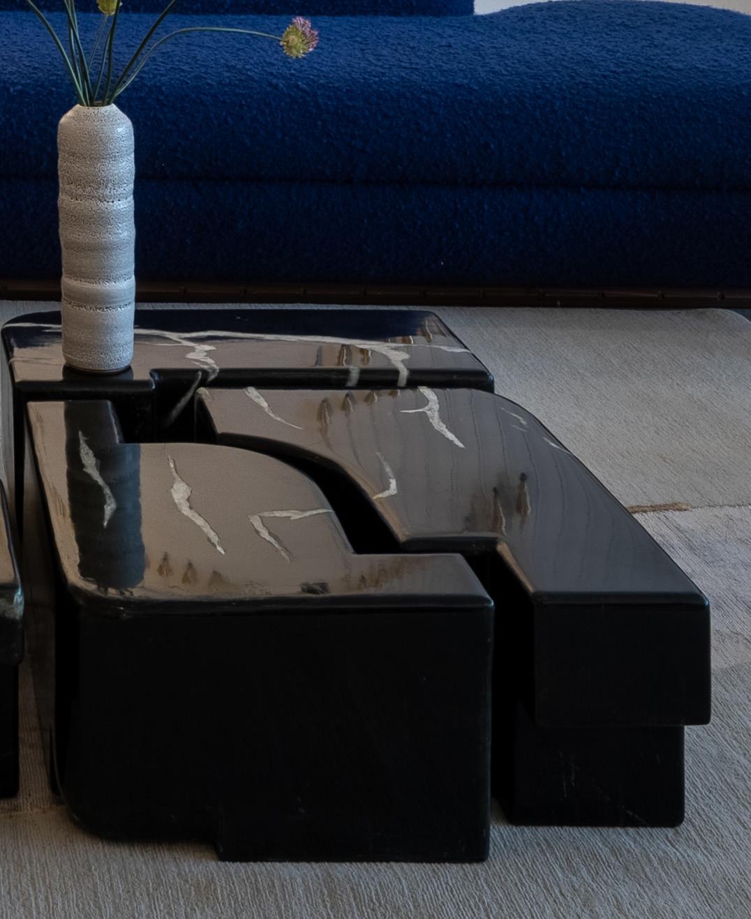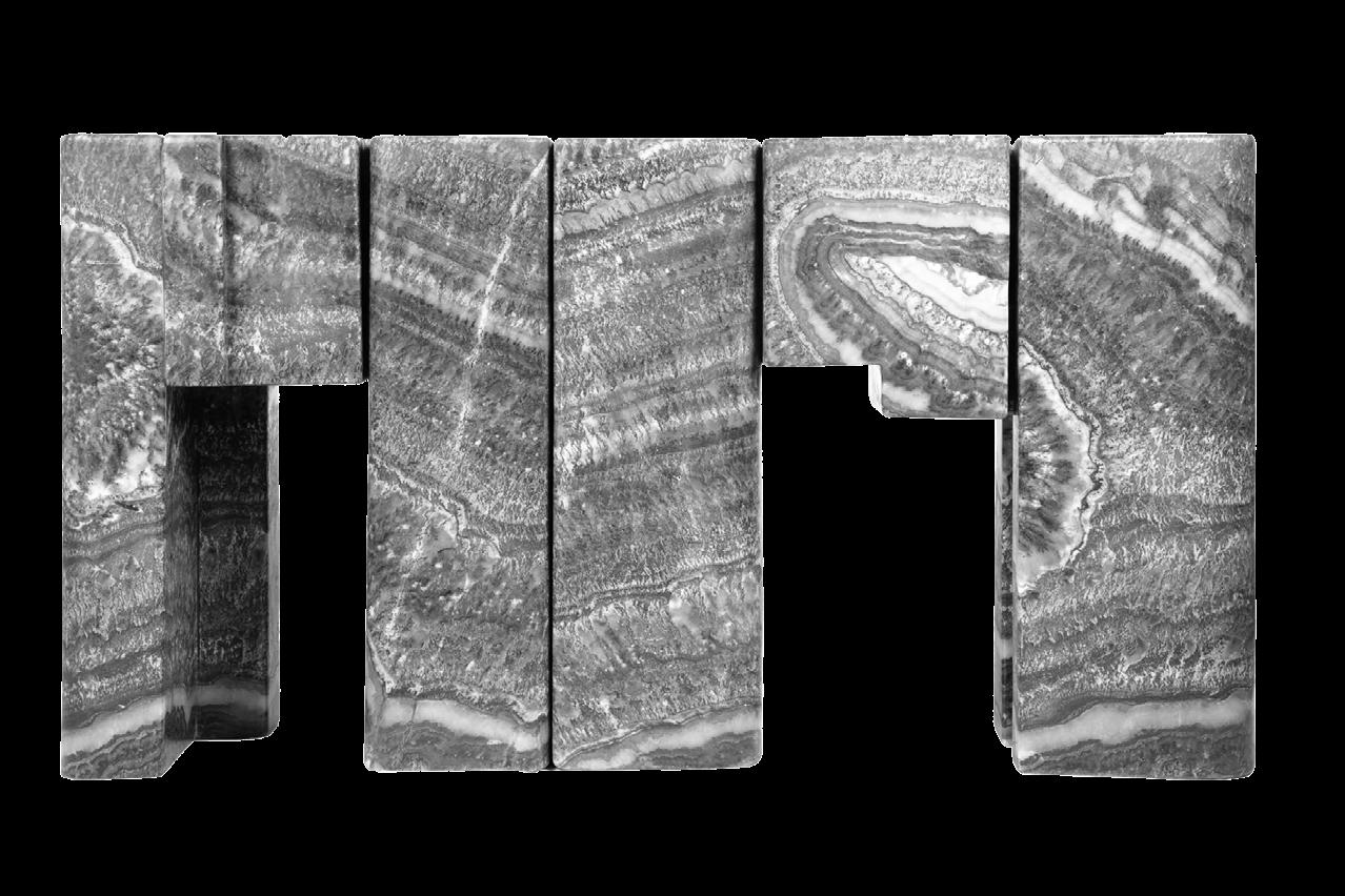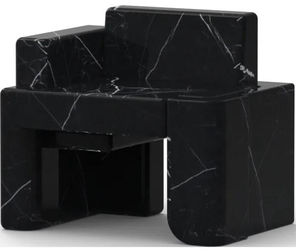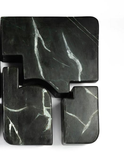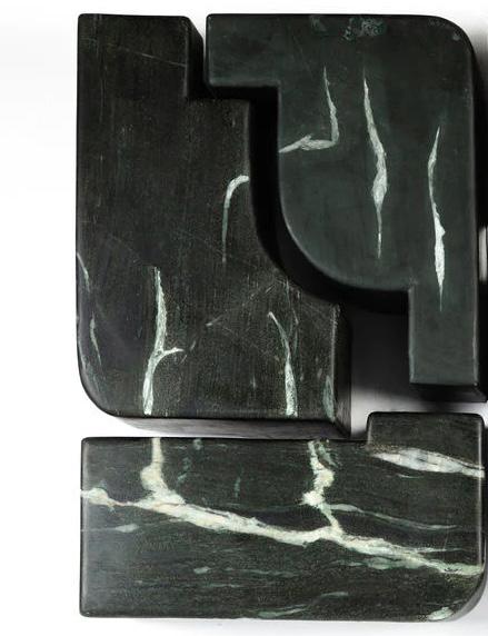 SHOWN IN BLACK MARBLE, MATTE FINISH WITH LIQUID SILICONE PROTECTIVE TREATMENT, MADE OF THREE INDEPENDENT GEOMETRIC MONOLITES.