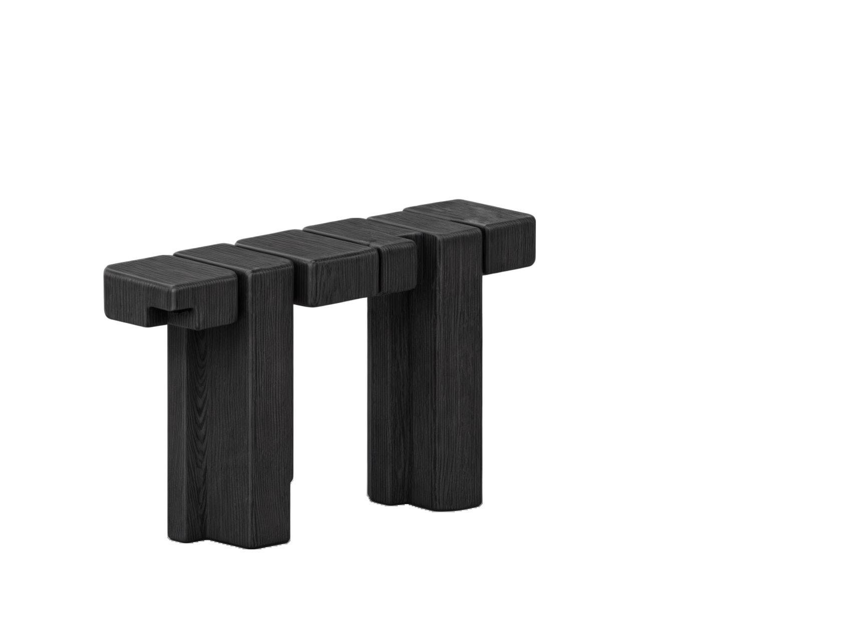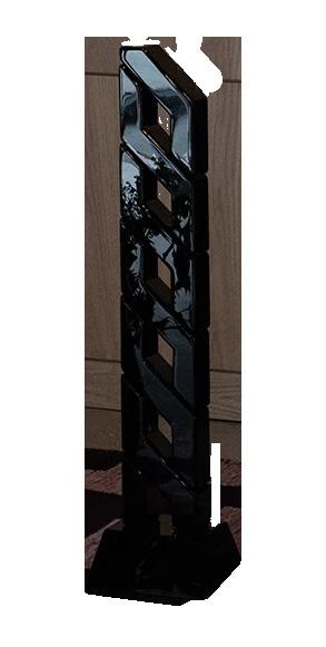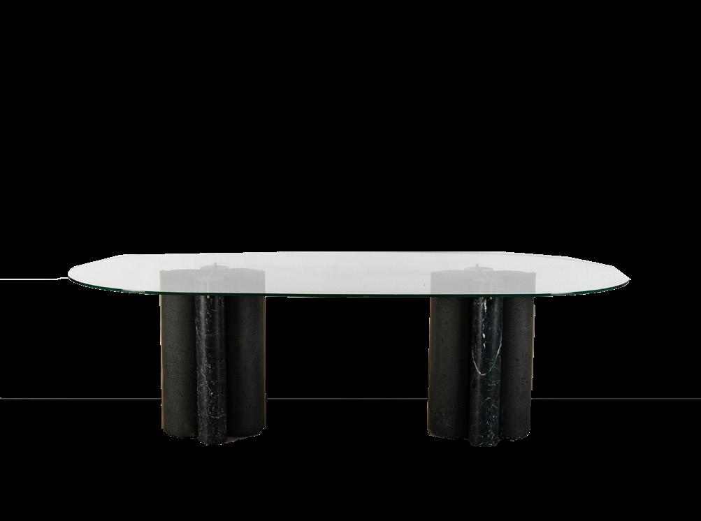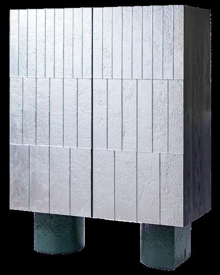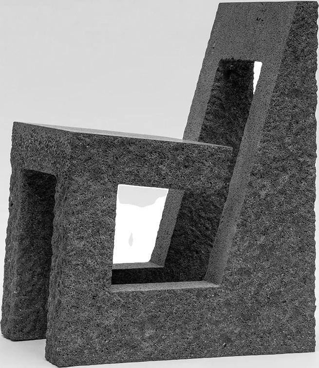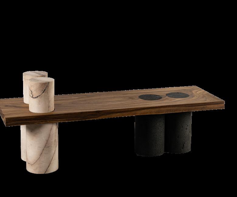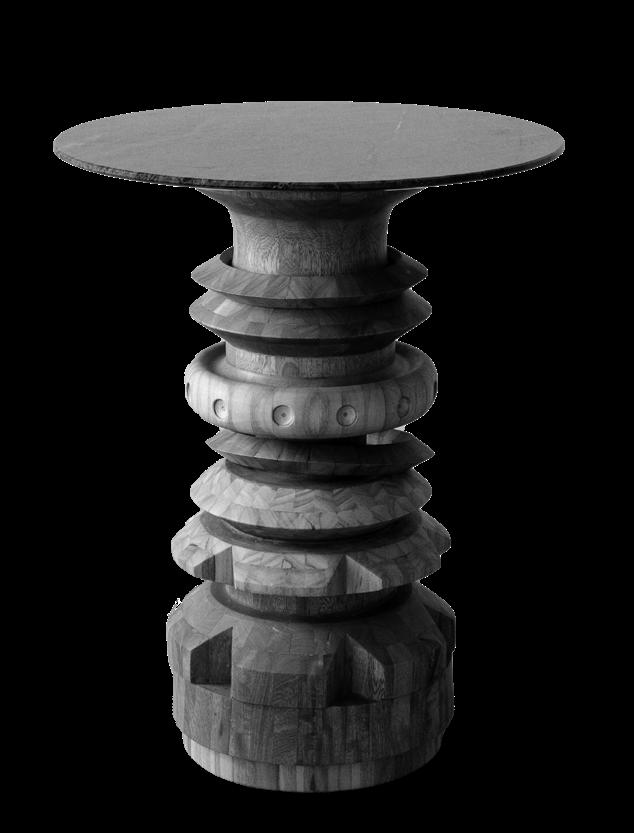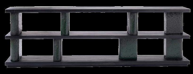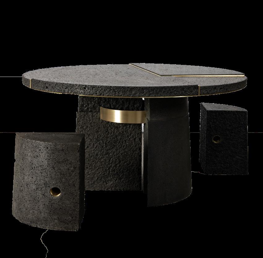 SHOWN IN BLACK MARBLE, MATTE FINISH WITH LIQUID SILICONE PROTECTIVE TREATMENT, MADE OF THREE INDEPENDENT GEOMETRIC MONOLITES.