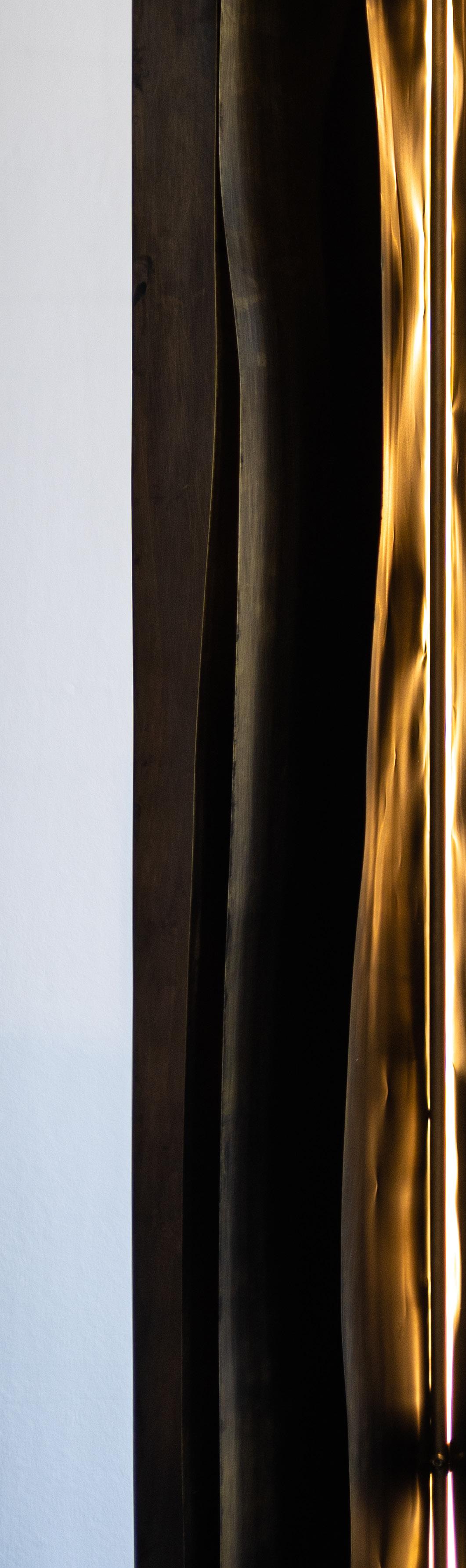 RAW ALUMINUM WALL PIECE INSPIRED BY ANCIENT MAYAN HIEROGLYPHICS.