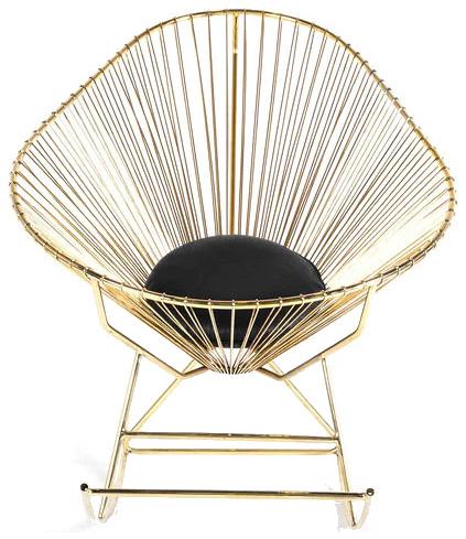 ROCKING CHAIR BUILT WITH SOLID BRASS RODS WITH A LEATHER UPHOLSTERED SEAT CUSHION
