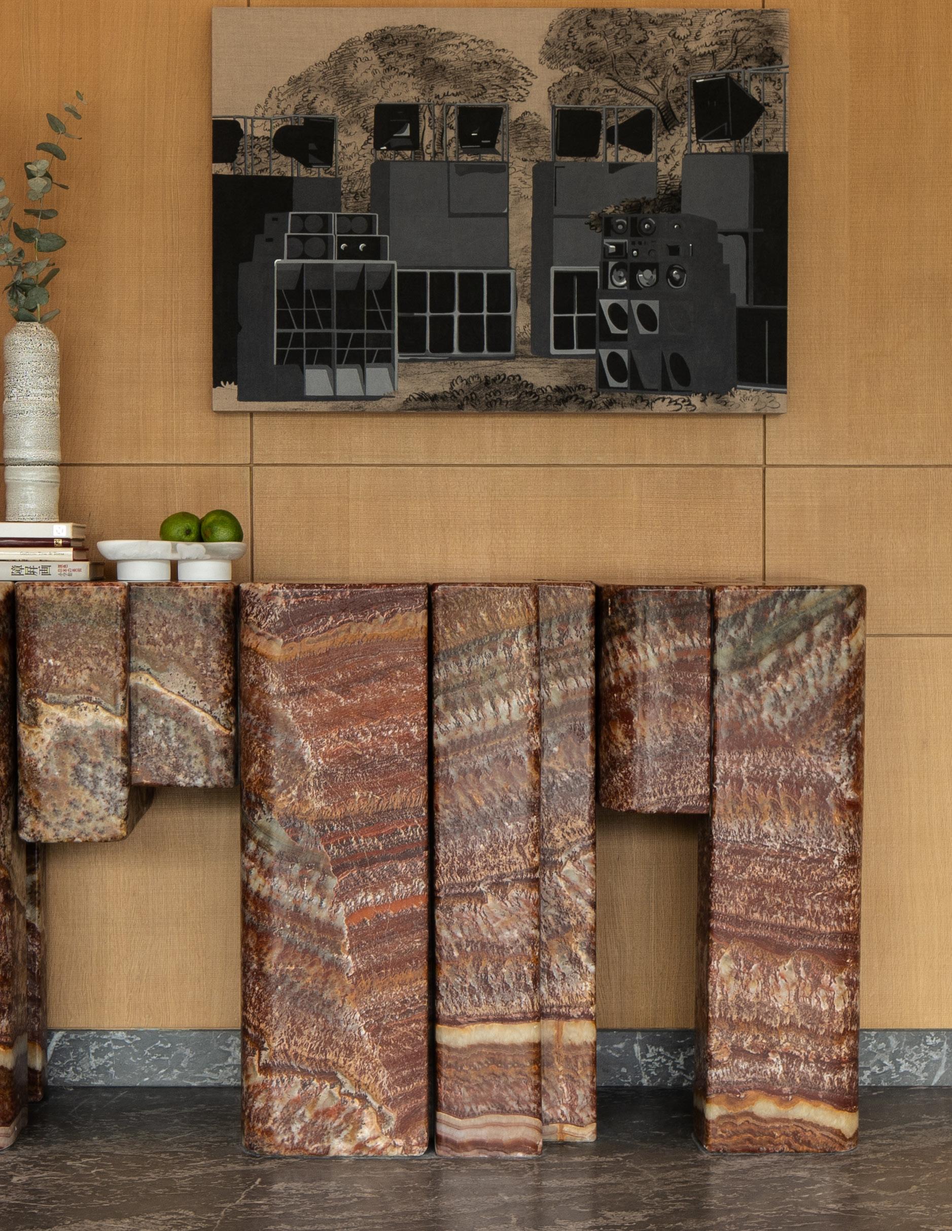 RED ONYX, BLACK MARBLE, VERDE TIKAL MARBLE AND TRAVERTINE STONE