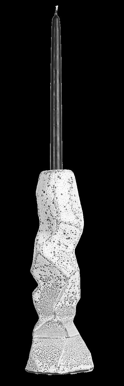 CANDLESTICK MADE WITH HIGH FIRE CERAMICS WITH MELTED IRON GLAZE.