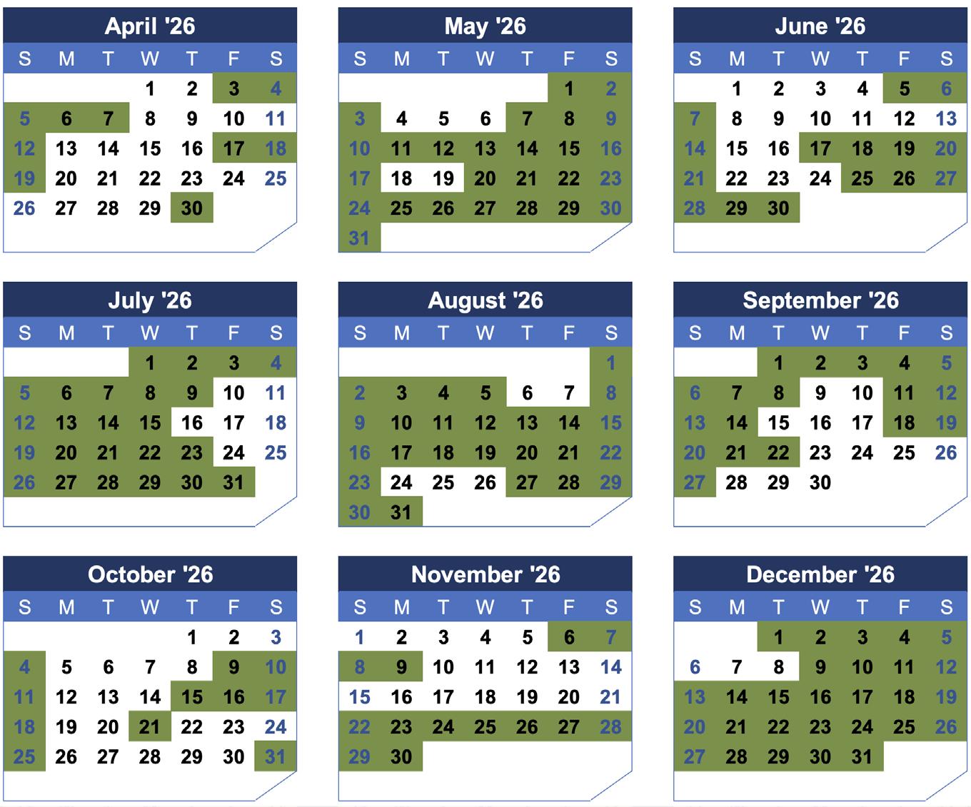 We encourage you to keep these months top of mind as you speak with clients and evaluate new opportunities. Programs with flexibility or the ability to move quickly could be an excellent fit during these periods, and your continued partnership in helping us fill these gaps is greatly appreciated.