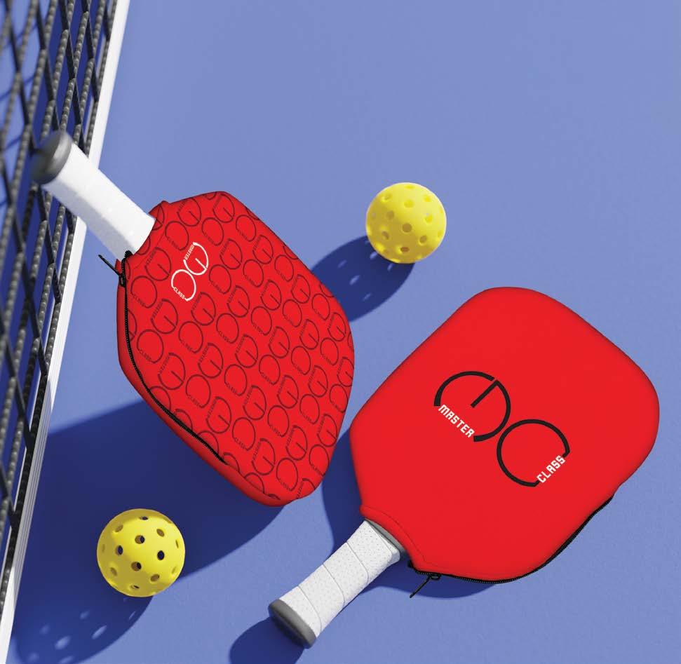 Designed for pickleball enthusiasts, this lightweight neoprene pouch holds two paddles and multiple balls, offering protective cushioning and moisture resistance.