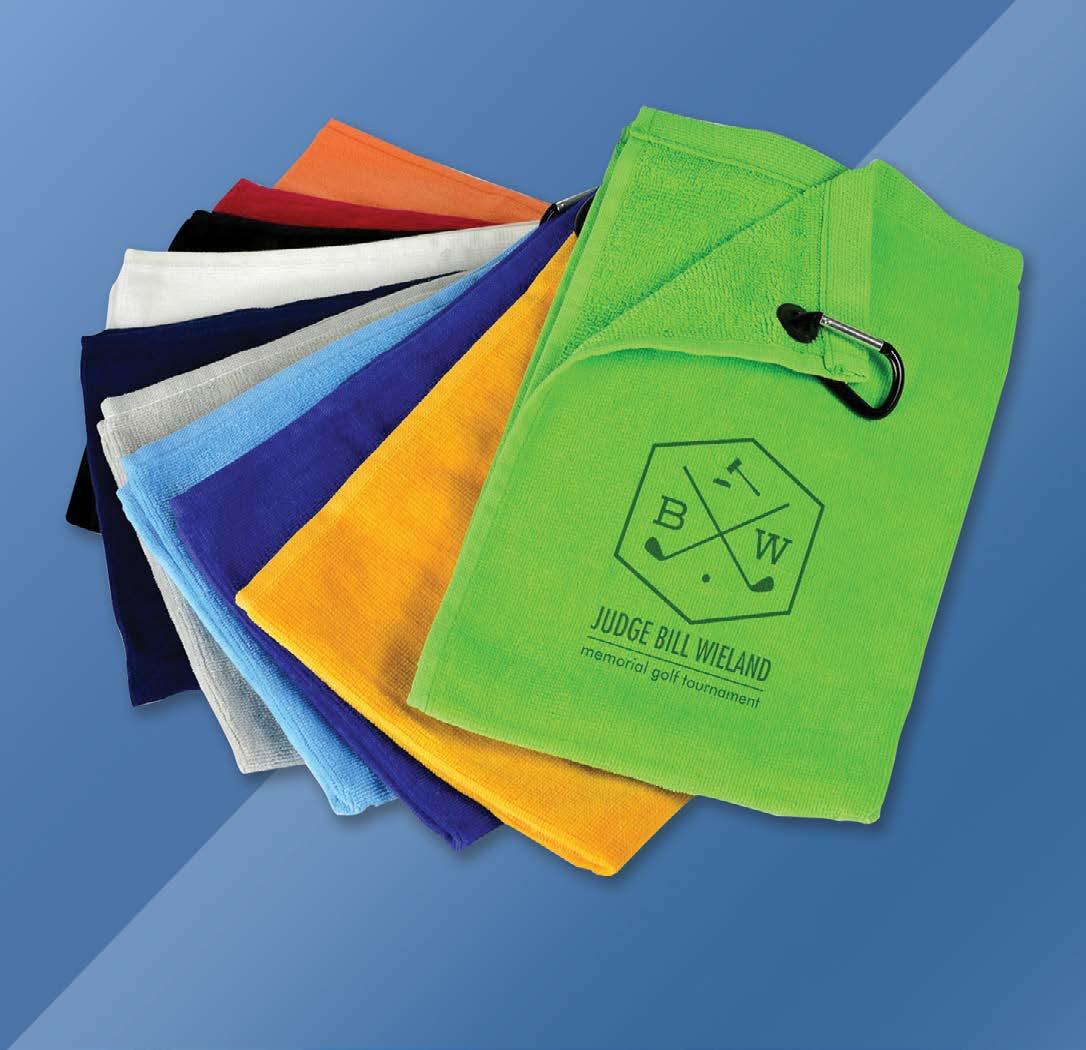Premium microfiber golf towel with a luxurious feel. Easily removes dirt and sand from your clubs, hands, and golf balls. 16"H x 14"W