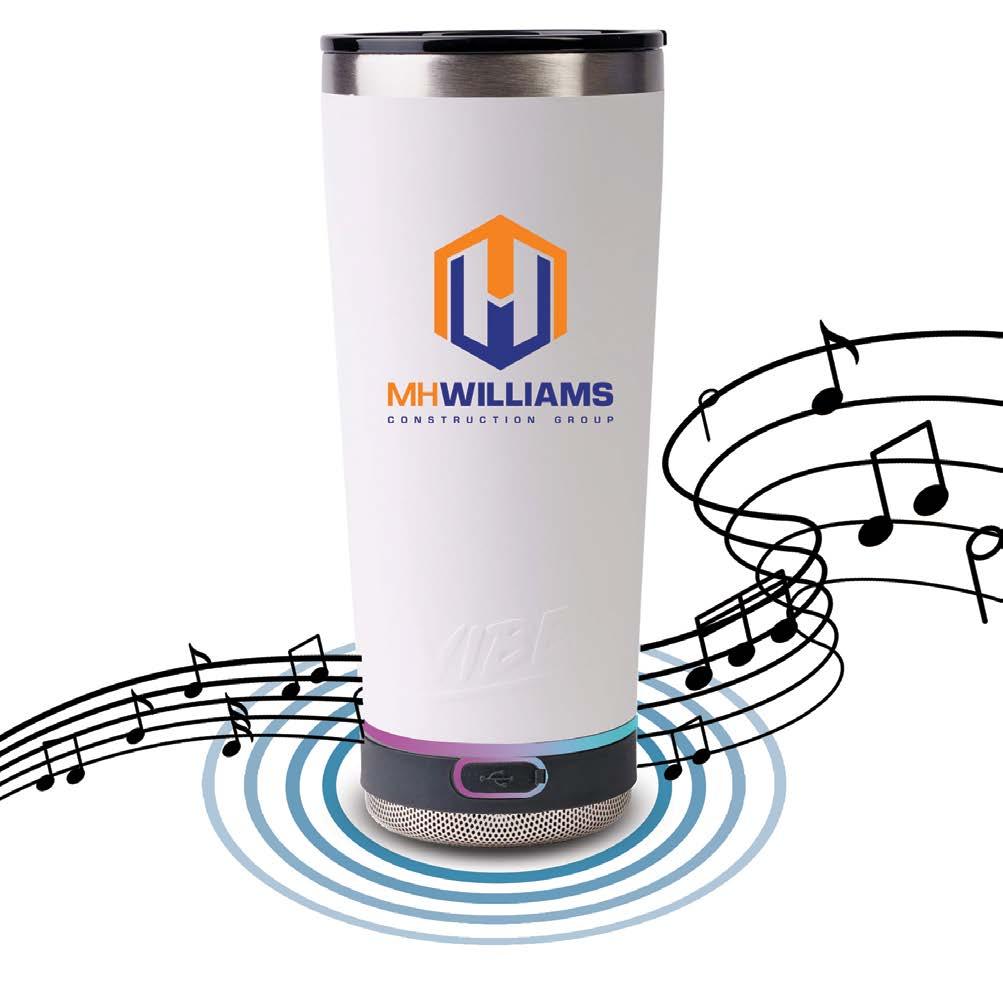 Double wall, stainless steel tumbler that keeps your beverage cool while playing your favorite tunes! Features an integrated Bluetooth® speaker and LED lights. 18 oz. 10"H