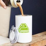 Travel mug made from recycled co ee cups is 100% leak proof. Features push lid mechanism to minimize spills and o ers one-hand opening. 16 oz. 81 2"H