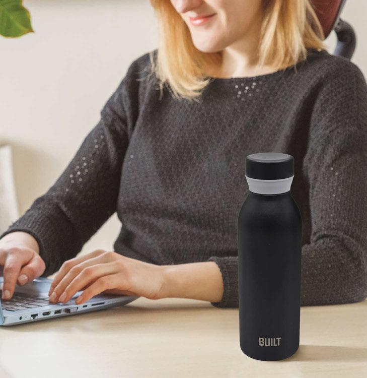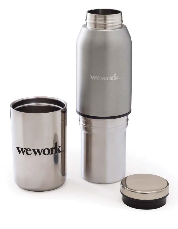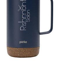Stainless steel vacuum sealed ask with two ip back handles and soft grips with a lid that doubles as a drinking cup. 40 oz. 12"H