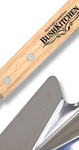 Quality meets value with this handy solid steel spatula featuring a wooden handle and beveled edge.