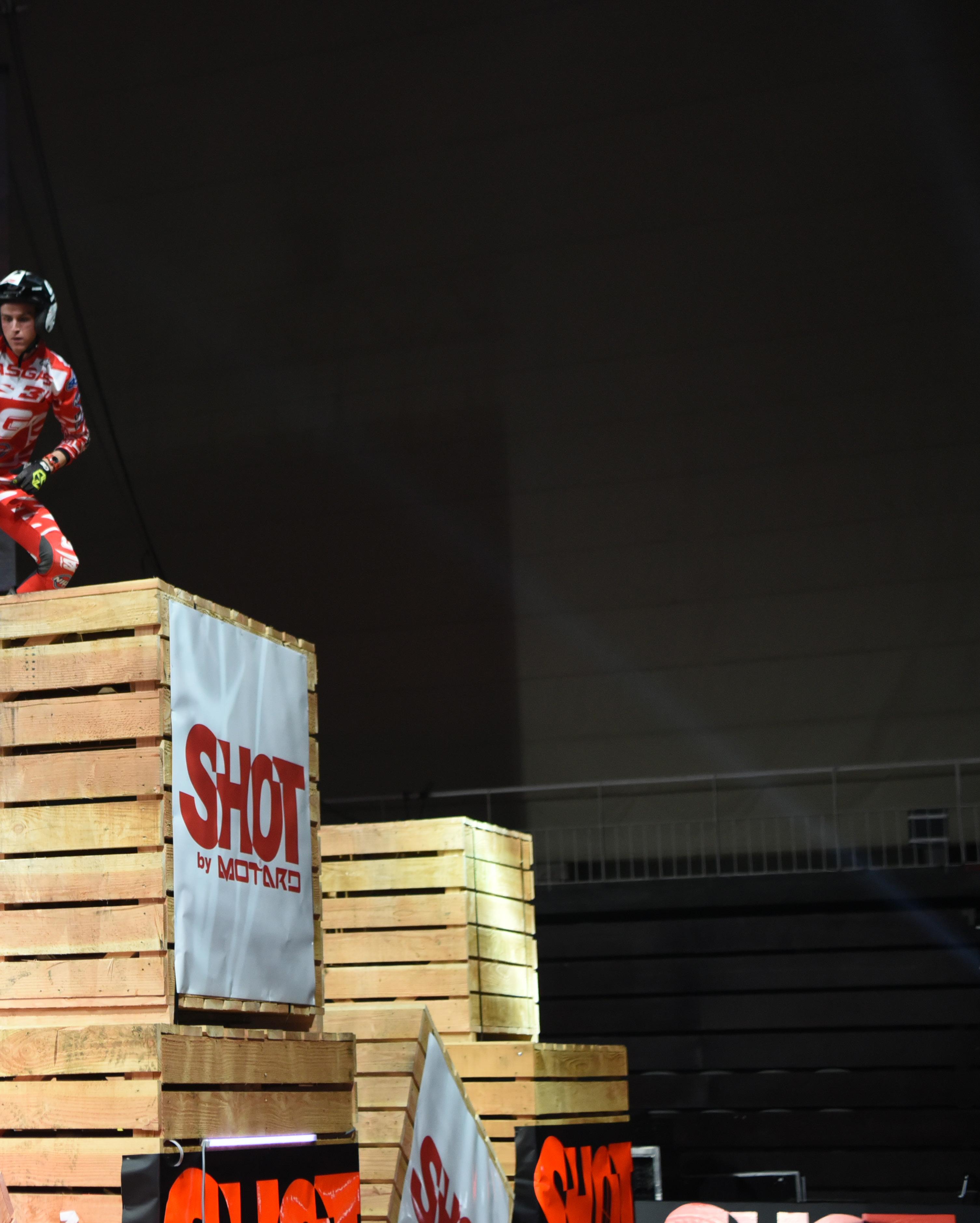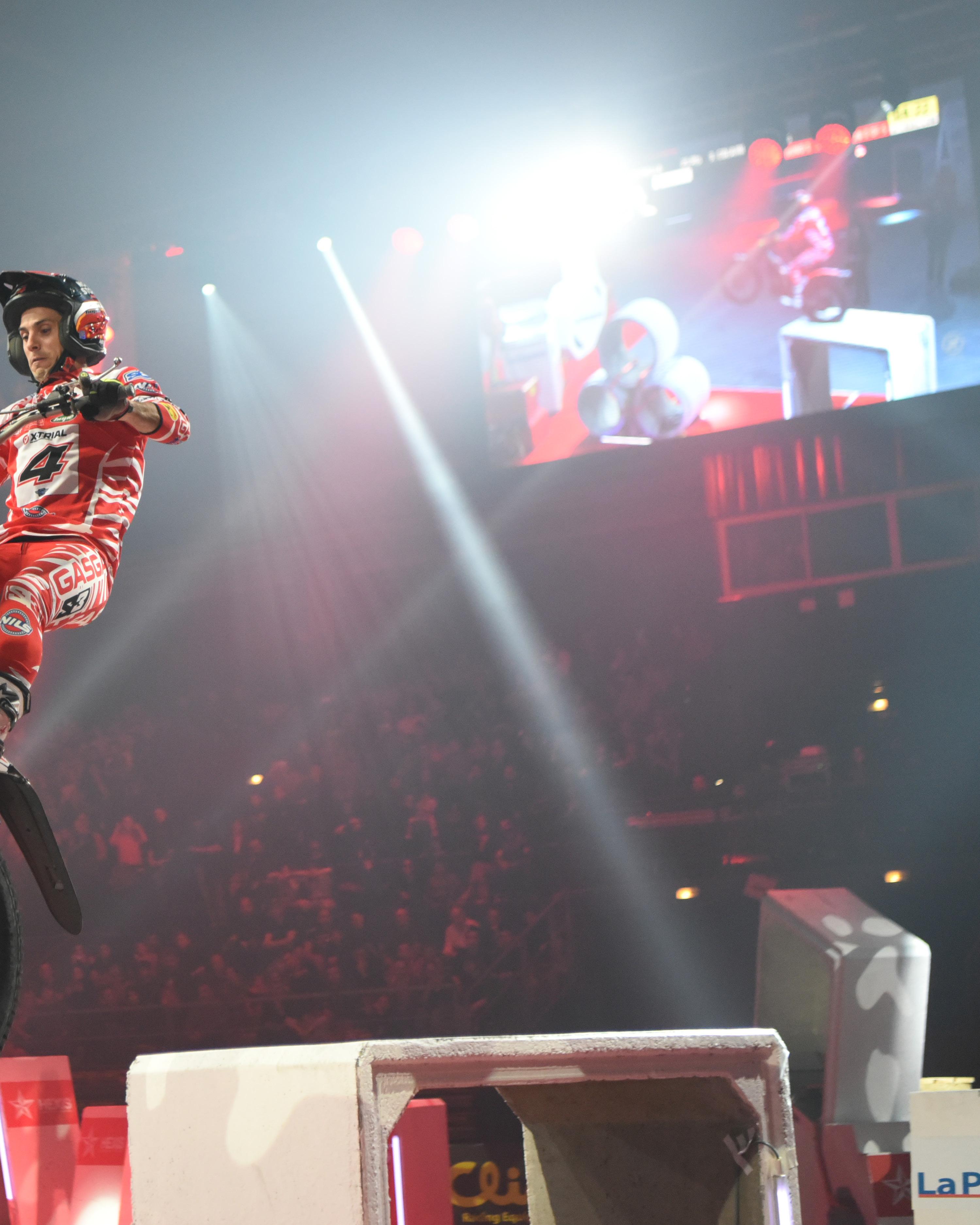 GasGas factory rider Jeroni Fajardo makes a bit leap at the Marseille round of the FIM XTrials Series in France. The Spaniard finished second to Toni Bou in the pentultimate round of the series.