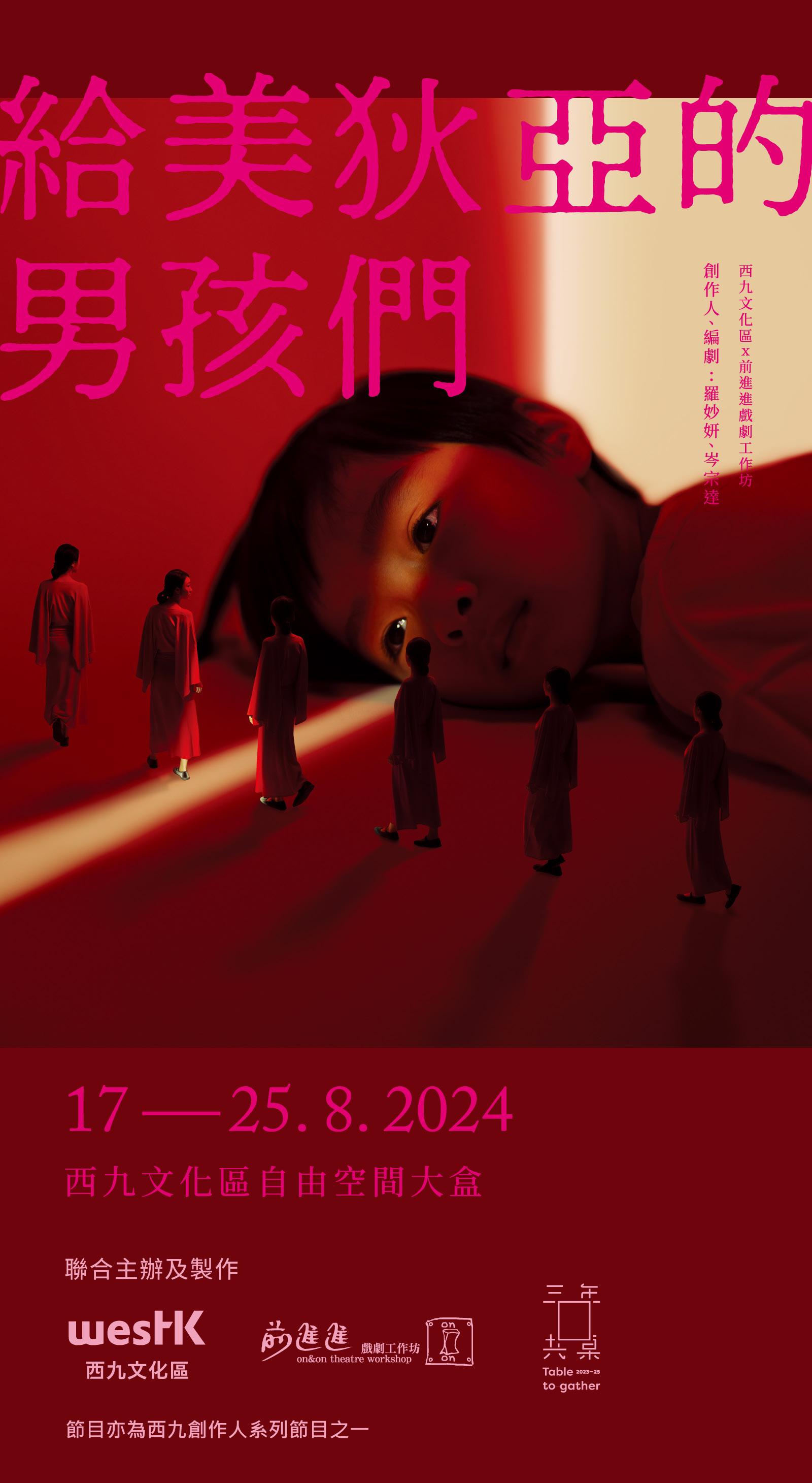 在創作及製作的不同階段裡,西九戲劇組以製 作人的角色與藝術家團隊緊密合作,希望能夠 兼顧創作過程各方面需要,與創作團隊同步發 展當代香港劇場新作。整個過程由研究及發展 ( Research & Development)開始,經歷階段 展演作小結,再開展創作第二階段,直至正式 演出。《給美狄亞的男孩們》是這種創作過程的 最佳示範例子之一。團隊在 2023 年的階段展 演後接收了很多觀眾回饋,隨後再繼續 R&D 工 作、訪談不同人士,再與小演員們開始第二階 段創作直到正式演出。「西九創作人」系列與前 進進戲劇工作坊(前進進)的「三年共桌」計劃 對鼓勵屬於新世代的原創作品有相同理念,這 一年多時間裡,與前進進一起工作都是很愉快 的經驗。