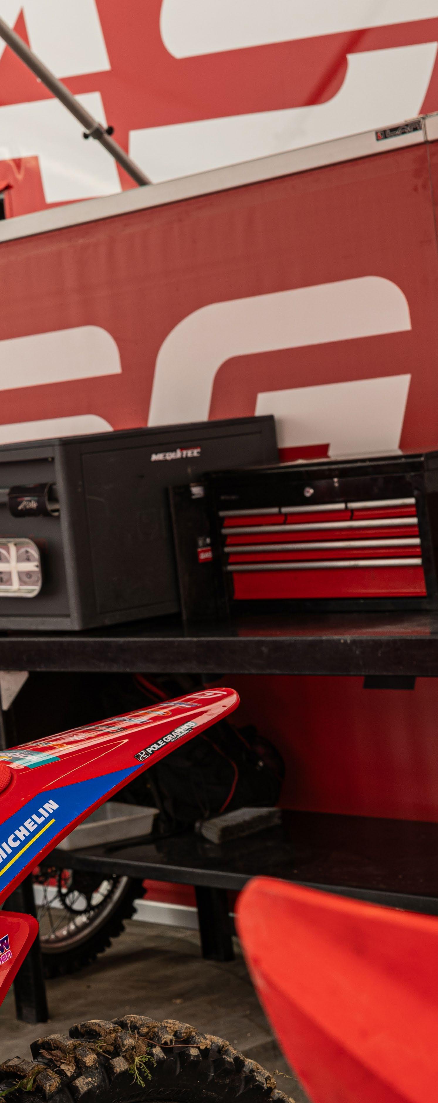 primera cita del Campeonato de España de Motocross en Talavera de la Reina, prueba que se corrió en un terreno totalmente embarrado). Las motos de correr las desmontamos enteras, lo repasamos todo, comprobamos todas las piezas, absolutamente todo y ya nos ponemos a preparar el material para la siguiente. Cuando empiezas la temporada todo va muy rápido y hay que tener muy claro qué hacer en cada momento. Casi no tenemos tiempo entre una carrera y la otra.