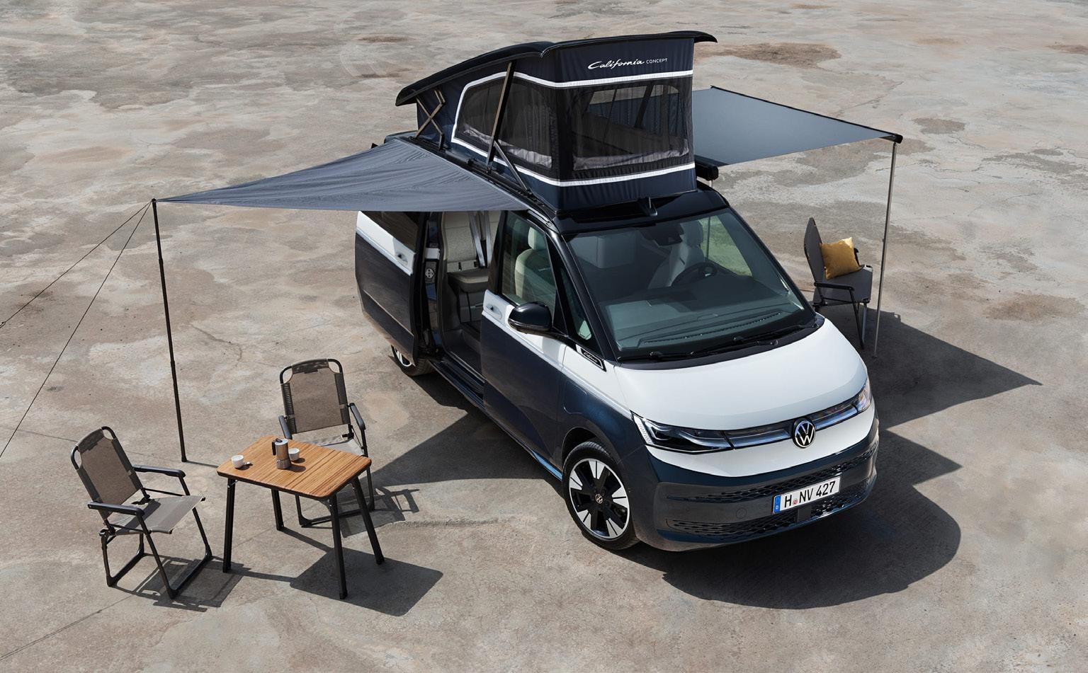 Volkswagen says that a California without a pop-up roof is “inconceivable”, which is why the concept has one present and correct. It’s also equipped with USB-C sockets and LED lights while the integrated bed features spring plates for added comfort.