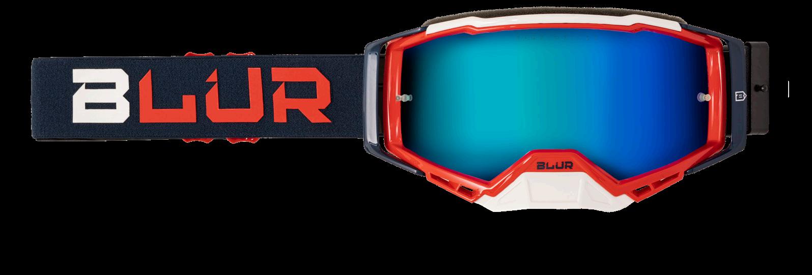 129 BLUR B-60 FEATURES | » | Revolutionary magnetic lens retention system | » | Lens is fixed magnetically to the frame making it very easy to take on and off | » | Wide field of vision due to the frameless design | » | Jacquard webbing strap with TPR | » | Triple foam for optimum comfort, durability and moisture wicking | » | Size-adjustable strap | » | 100% UV protection | » | Anti-scratch coating for durability | » | Mudflap, 10-pack of tear-offs and goggle pouch included | » | Anti-fog lens with tear-off pins REPLACEMENT PARTS: