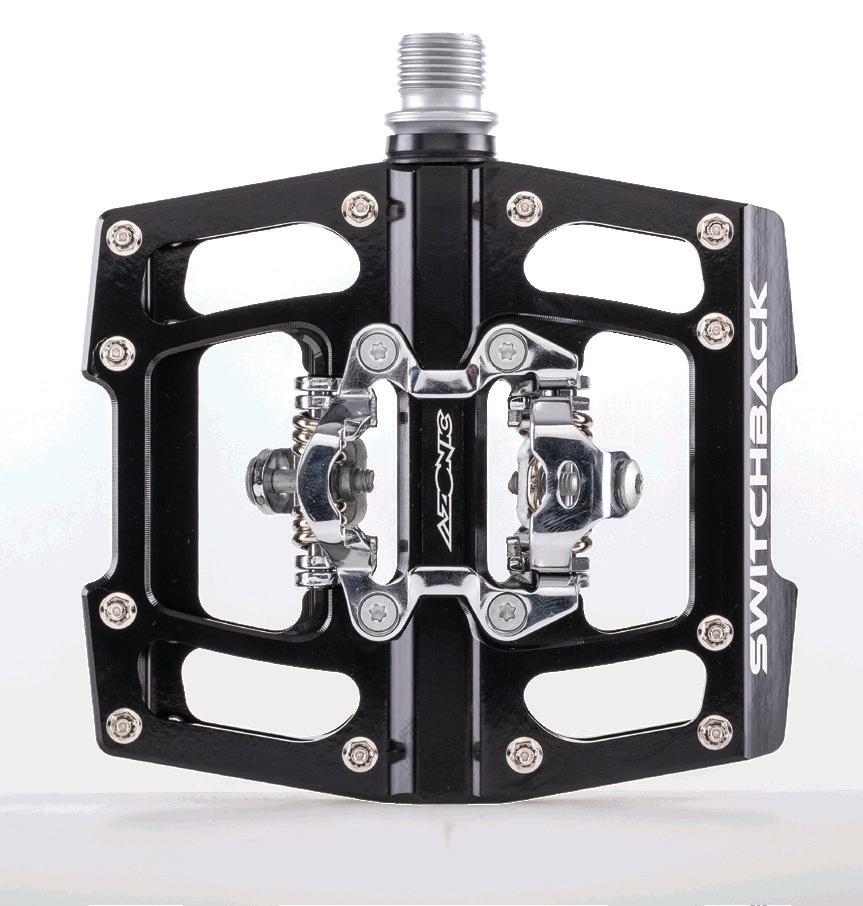 124 SWITCHBACK SPD PEDAL COLOR PART NO. Black 3120-200 FEATURES | » | 572 grams a pair with pins | » | Aluminum body | » | SPD compatible | » | 2 sided SPD design | » | Adjustable tension design | » | 2 DU bushings 1 Sealed bearing | » | 110mm-w / 100mm-l / 17mm thin | » | CNC Chromo axle | » | 24 removable pins AZ SPLATTER FENDER COLOR PART NO. BLACK/NEON 3021-002 BLACK/GREEN 3021-001 FEATURES | » | Keeps mud off your back | » | Universal fit for front and rear: 7 mounting holes for versatility | » | Comes with 4 zip ties for mounting plus another 4 replacements | » | Polypropylene composition | » | Weight: 33g | « | BLACK / NEON | « | BLACK / GREEN AZONIC 2023 /