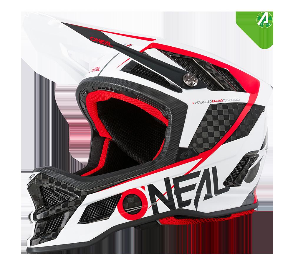 BLADE FEATURES | » | Carbon / Fiberglass / Polyacrylite (dependent on model) fiber lightweight construction | » | Maximum airflow and cooling with multiple oversized vents and connected air channels | » | Glossy finish | » | Durable multi-colored graphics | » | Comfortable, pre-shaped and padded Dri-Lex® inner lining with antibacterial Polygiene® treatment, removable, sweat absorbing and washable | » | Easy and quick removable cheek pads with emergency pull straps | » | O’Neal Fidlock® magnetic buckle (engineered in Germany) for easy, single-handed fastening and release, provides maximum security while riding | » | Pre-installed with solid, anodised aluminium visor-screw | » | Incorporating IPX® ACells rotational impact absorption technology. Designed to reduce head injuries caused by rotational impacts during crashing | » | GoPro® Mount included | » | Height adjustable visor | » | Helmet storage bag included | » | Meets EN1078 and CPSC safety standard for bicycle helmets FEATHER LIGHT SHELL ULTRA PLUSH COOLMAX LINER 1150 g ( ± 50g) SHELL WEIGHT MAXIMUM AIR FLOW C HELMETS 4 MTB 2023 /