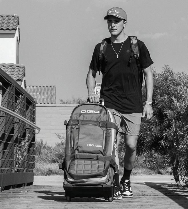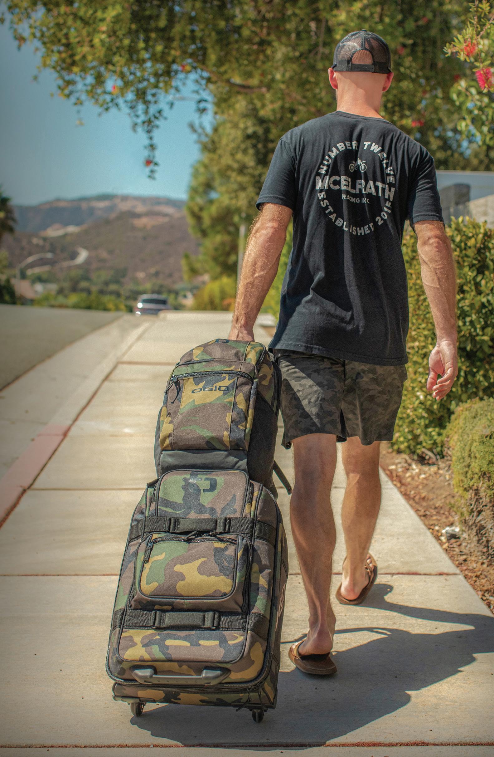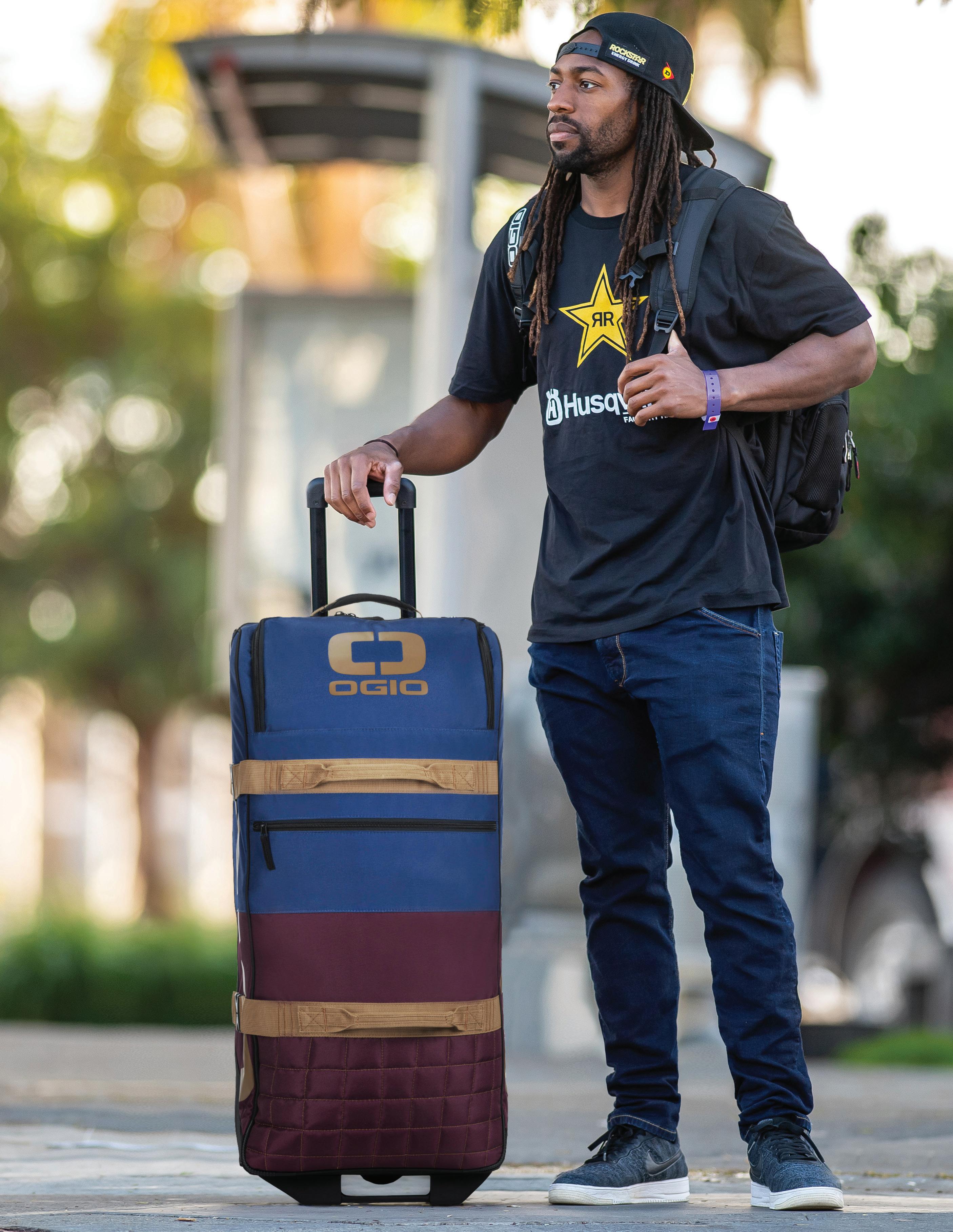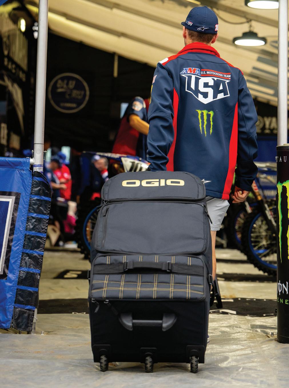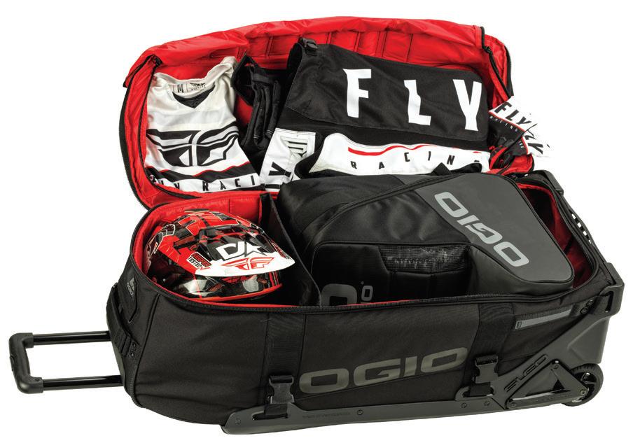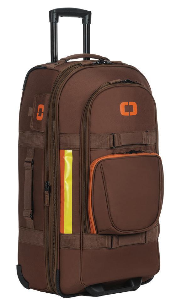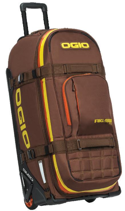 • Includes MX Boot Bag • New changeable wheel set, with customizable wheel color options (purchased separately) • Internal tie-down straps to hold down boots, your clean clothes or other gear • Upgraded heavy duty grab handles • Additional top slash storage pocket • ID window on the top of the bag • SLED (Structural Load Equalizing Deck) System for increased durability in the harshest of conditions. • Wide mouth LID opening for easy access • Several multi-use under LID compartments for apparel and smaller gear • iFOM (Integrated Foam) construction throughout for added protection and durability • Telescopic pull handle 34 ½”H x 16”W x 15 ½”D / CM 86 H x 42 W x 38.5 D 13.4 Lbs/6.1 Kg (Empty),14.8 Lbs/6.75 Kg (with Boot Bag) 7,620 Cu.In/125 L (Empty) + 600D Poly, 420D Dobby Poly The Rig 9800 gets a facelift and added features in the revamped Rig 9800 Pro. Featuring OGIO’s renowned SLED, the Rig Pro gets an added MX boot bag and changeable wheel set as part of the new overall design. RIG 9800 PRO | woody 801003.13 NEW COLOR | stay classy 801003.14 | cubbie 801003.17 | tropics 801003.08 NEW COLOR NEW COLOR PROSPECT | ATS CASE | HEAD CASE | MX GOGGLE BOX | MX450 TOOL PACK |11 |