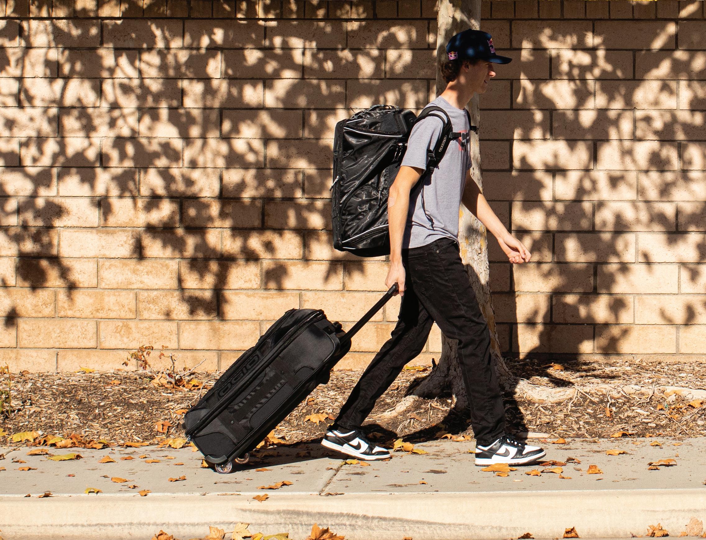 3 large, separate compartments to keep gear organized • iFom (Integrated Foam) construction throughout for added gear protection • Easy clean eco-friendly PVC lined boot compartment • 3-wheel design for stability and control • Multiple grab handles for easy handling • Telescopic pull handle