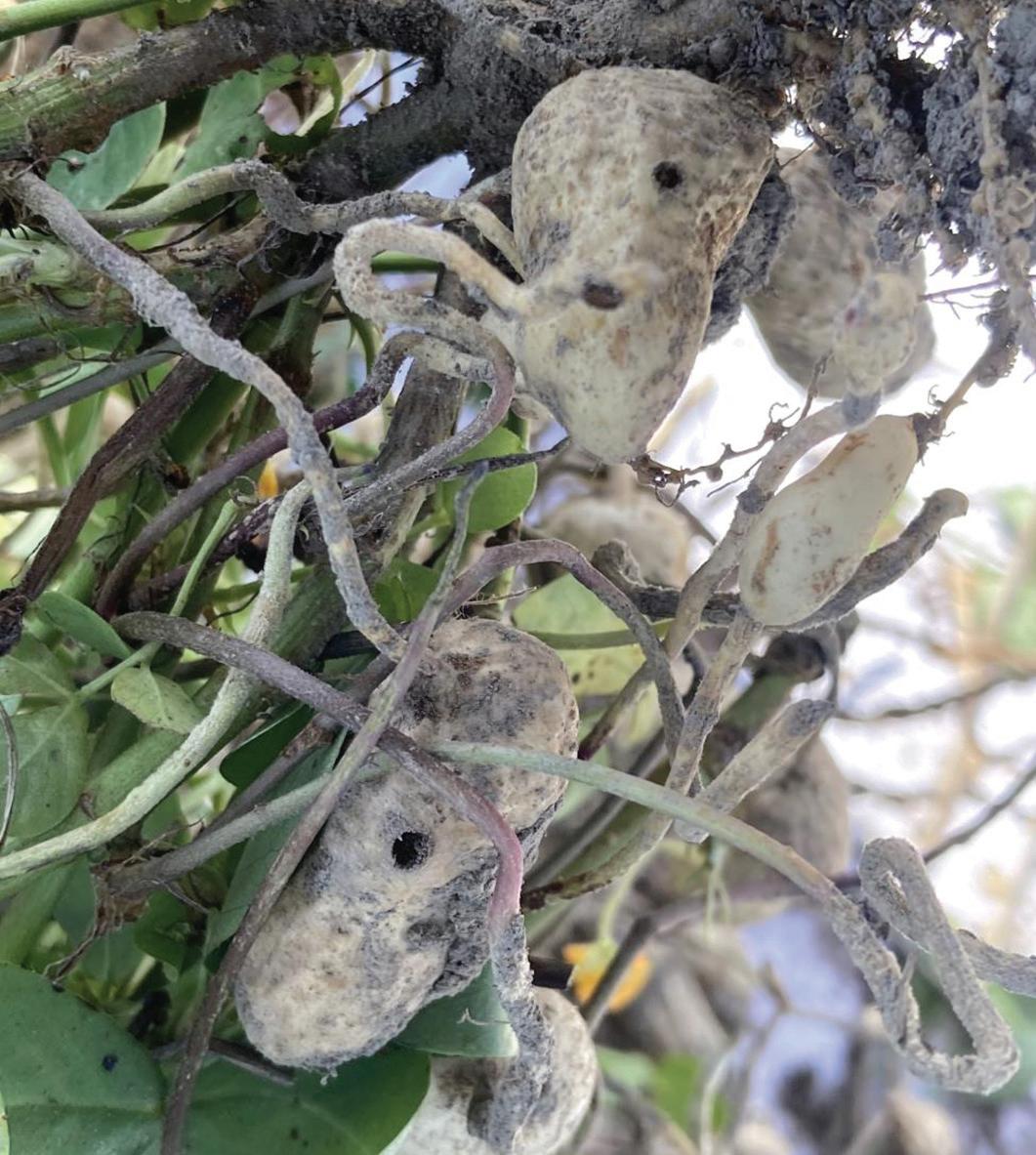 As a legume, peanuts use the symbiotic relationship with bacteria added as an inoculant to fix atmospheric nitrogen into a form usable by the plant. The deep tap root is good at scavenging residual soil phosphorus and potassium. The next limiting element becomes calcium, which can lead to “pops” or no kernels and reduced yield. Researchers have also found that calcium is critical for good germination rates of peanuts saved for seed.