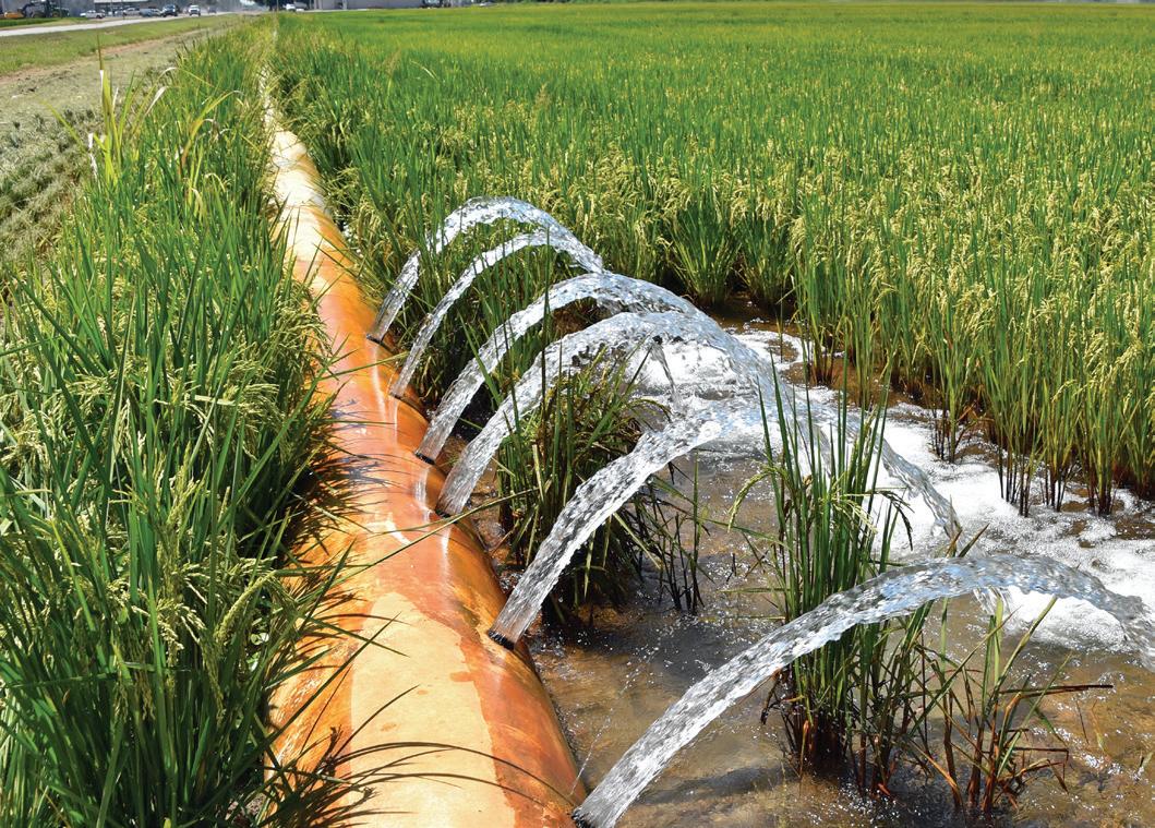 Waterfowl take enormous bene t from the rice paddies, stocking up on more than half the calories they need to make their 2,000-mile return journey in the spring. “ ey use the rice elds to store up body fat to fuel their migration up north,” said McCreary, the Ducks Unlimited director.