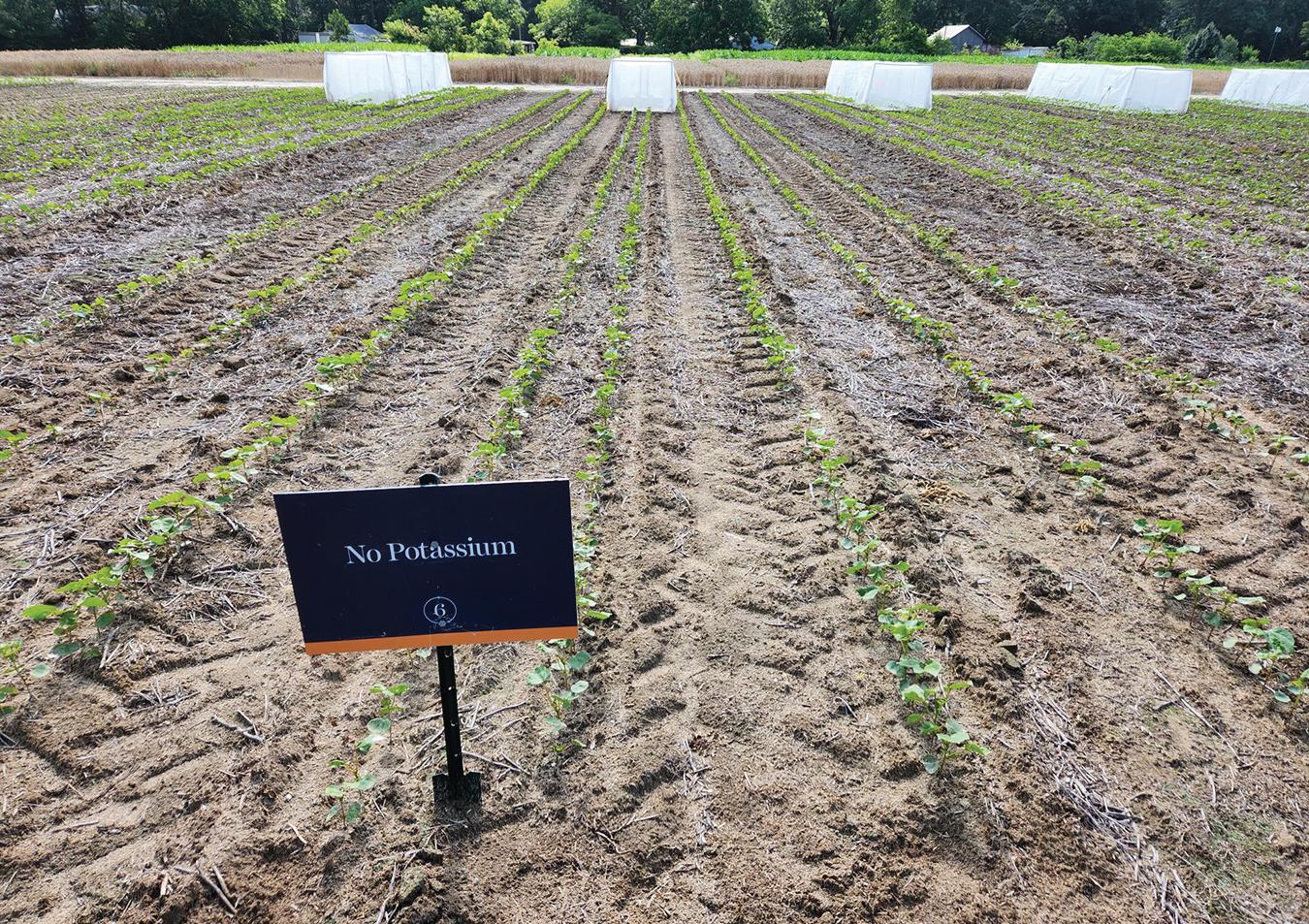 One experiment was established to show the benefits of crop rotation and winter cover crops. The other is a fertility study that addressed the problem of cotton “rust,” which proved to be related to insufficient potassium. It demonstrates the in-season progression of nutrient deficiency symptoms associated with low/no potassium, nitrogen, sulfur and boron, as well as low pH. Cotton is the focus of the experiments, but corn, soybeans and wheat are rotational crops.